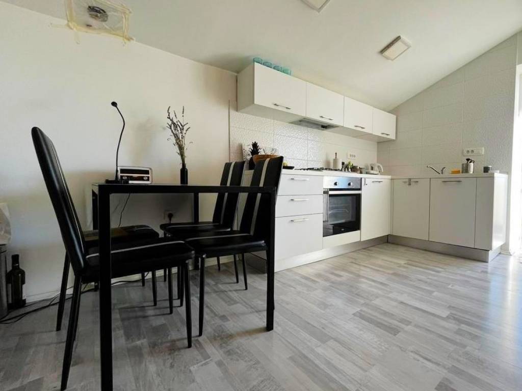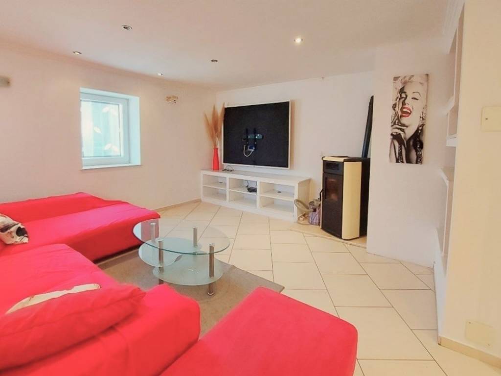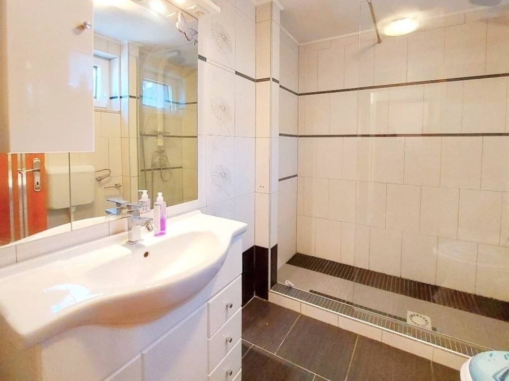 Prizemlje kuće se sastoji od kuhinje sa blagovaonom, velikim dnevnim boravkom u kojem se nalazi peć na pelete, velika kupaonica + odvojeni wc i malo spremište.