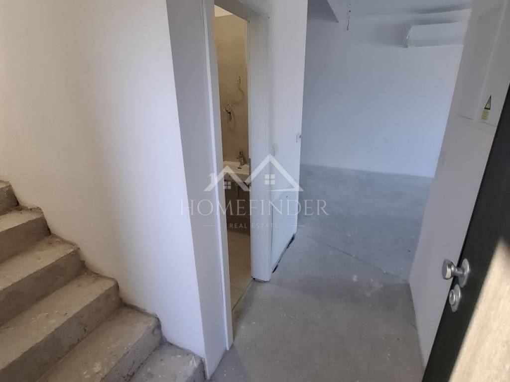 Stan je raspoređen na dvije etaže, što prostoru daje dodatnu dozu prostranosti i privatnosti. U donjoj etaži nalazi se jedna spavaća soba, prostrani dnevni boravak povezan s kuhinjom i blagovaonicom, kupaonica te terasa površine 16,79 m², idealna za opuštanje na otvorenom. Na gornjoj etaži smještene su dvije spavaće sobe, dodatna kupaonica te terasa veličine 10,07 m² s lijepim pogledom na okolinu.