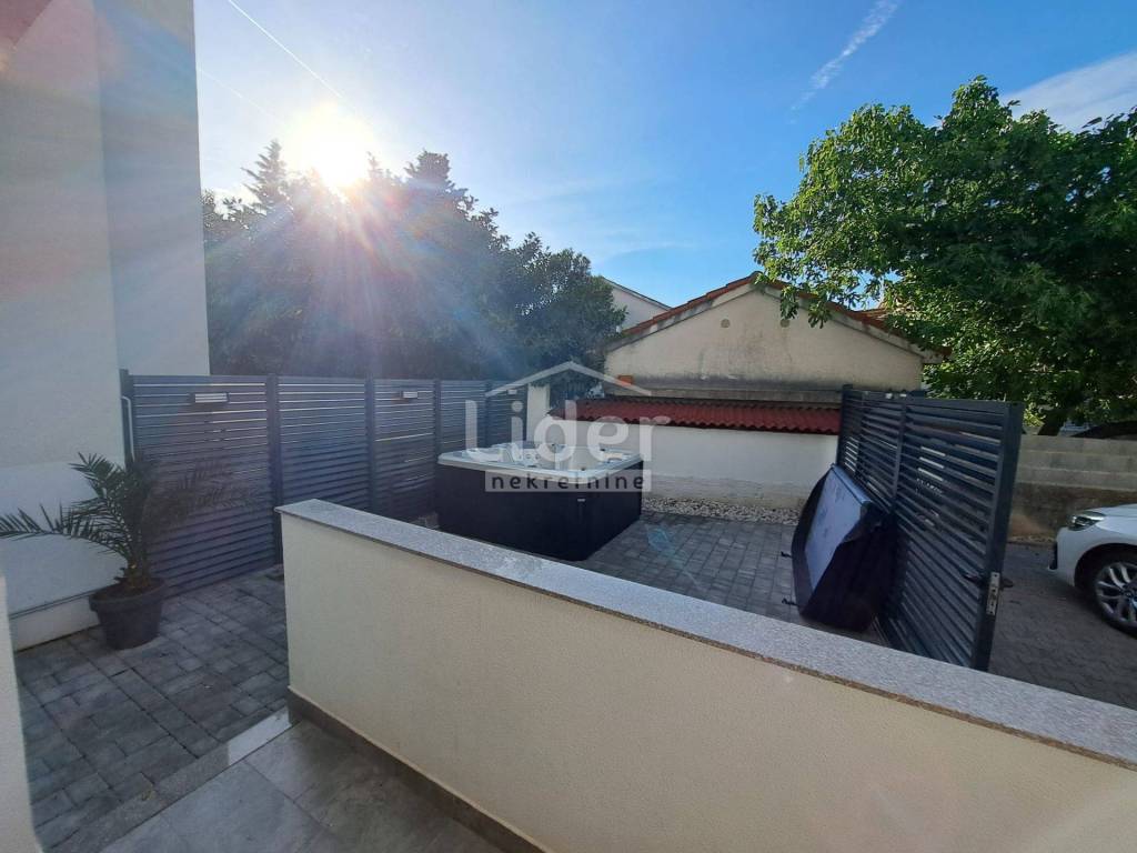 Udaljen samo 15 min hoda do samog centra Novalje, te samo 5 min hoda do škole i vrtića.
