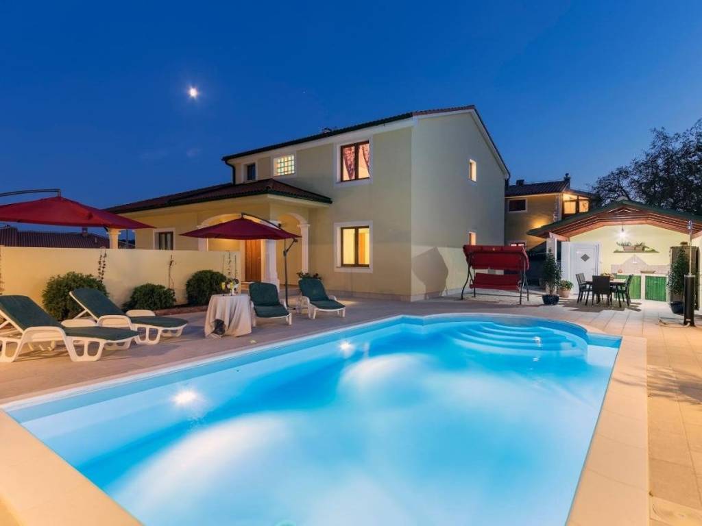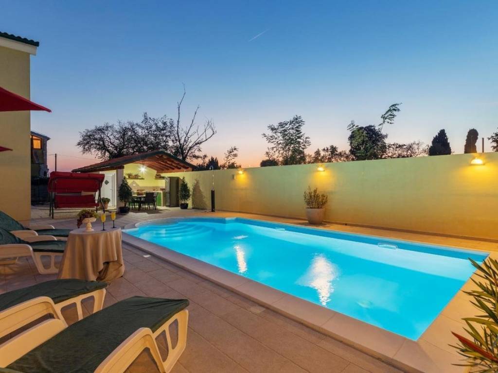 Na prodaju je ova predivna kuća za odmor u Vodnjanu površine 254 m2. Kuća se sastoji od 4 spavaće sobe, 2 kupaonice plus dodatno još jedan wc sa vanjske strane kuće, dnevnog boravka, kuhinje s blagovaonom te natkrivene terase s pogledom na vrt. Svi sadržaji su u blizini kuće, do Rovinja udaljenost 30 km, do Pule 20 km, do plaže nekih 10 min vožnje autom. Kuće se prodaje opremljena sa uhodanim poslom najma. Više detalja na upit.