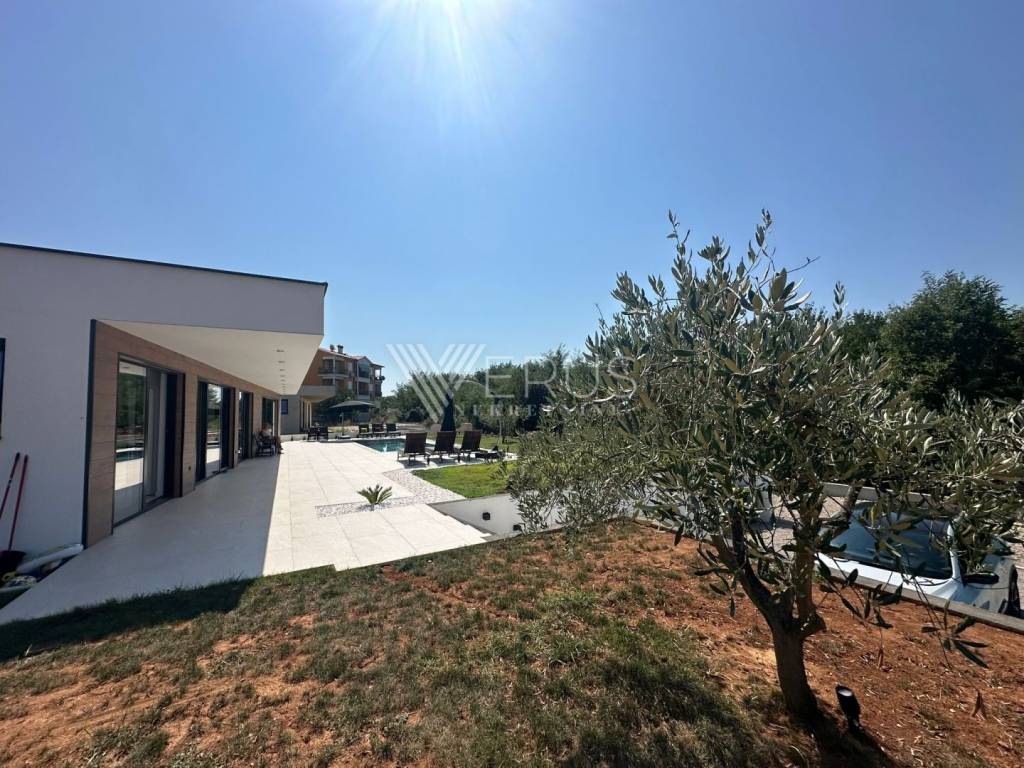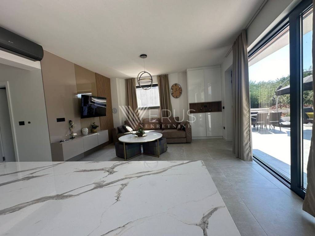 Na mirnoj i diskretnoj lokaciji smjestila se moderna novogradnja s bazenom i dvije potpuno odvojene stambene jedinice, idealna za luksuzan život ili turističko iznajmljivanje.