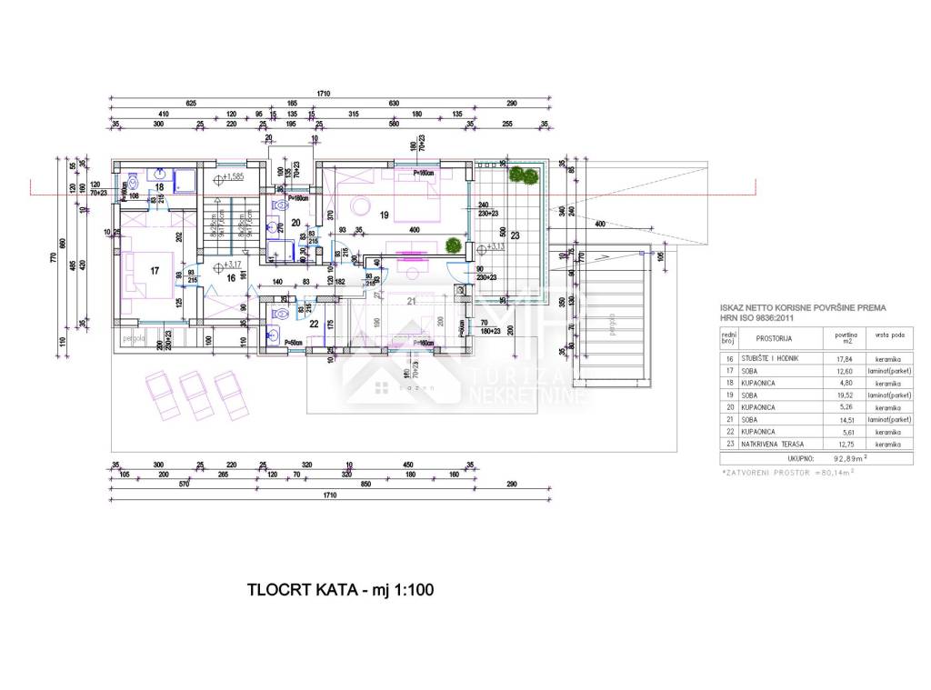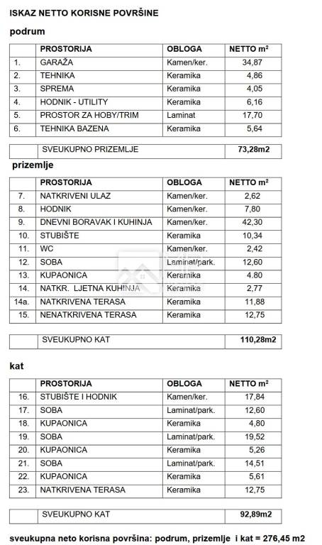 Ukupna korisna neto površina kuće iznosi 276,45m2.