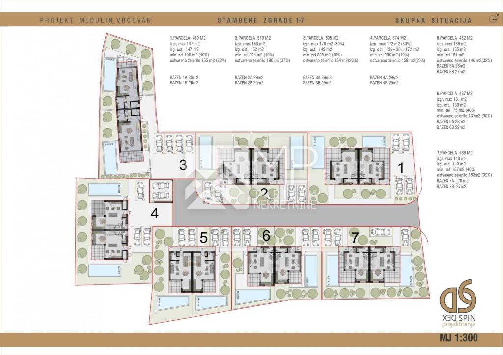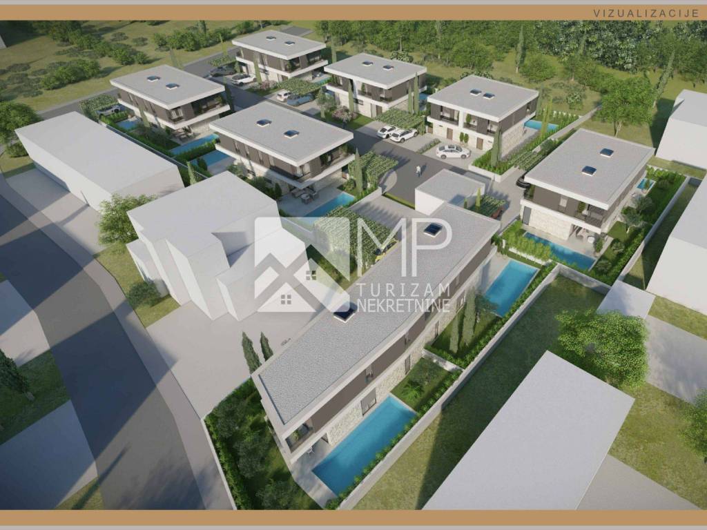 Zemljište se prodaje isključivo u kompletu, a uz njega se isporučuje i idejni projekt za izgradnju modernog stambenog kompleksa - 7 modernih stambenih vila, svaka s: •privatnim bazenom (22–28 m²) •dvije stambene jedinice po objektu •suvremenim arhitektonskim dizajnom •odvojenim vrtovima i parkirnim mjestima •optimalnom organizacijom prostora (P+1)