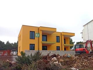 U tijeku je izgradnja manje stambene zgrade sa ukupno 4 stana. Stambeni objekt modernog izgleda sastoji se od dvije etaže: prizemlje + 1. kat. Stanovima u prizemlju pripada odgovarajući dio vrta, a svi stanovi će imati lijepi pogled na more. Zgrada se gradi kvalitetnim materijalima prema posljednjim standardima gradnje. Od opreme izdvajamo: stiropor fasada, protuprovalna ulazna vrata, PVC stolarija antracit boje, podno grijanje u svim prostorijama, klima uređaj u svakoj prostoriji, električni podizači roleta, komarnici, moderne kupaonske sanitarije, visokokvalitetne podne obloge, ograde na terasama. Planirani završetak radova i useljenje - proljeće 2026. godine.