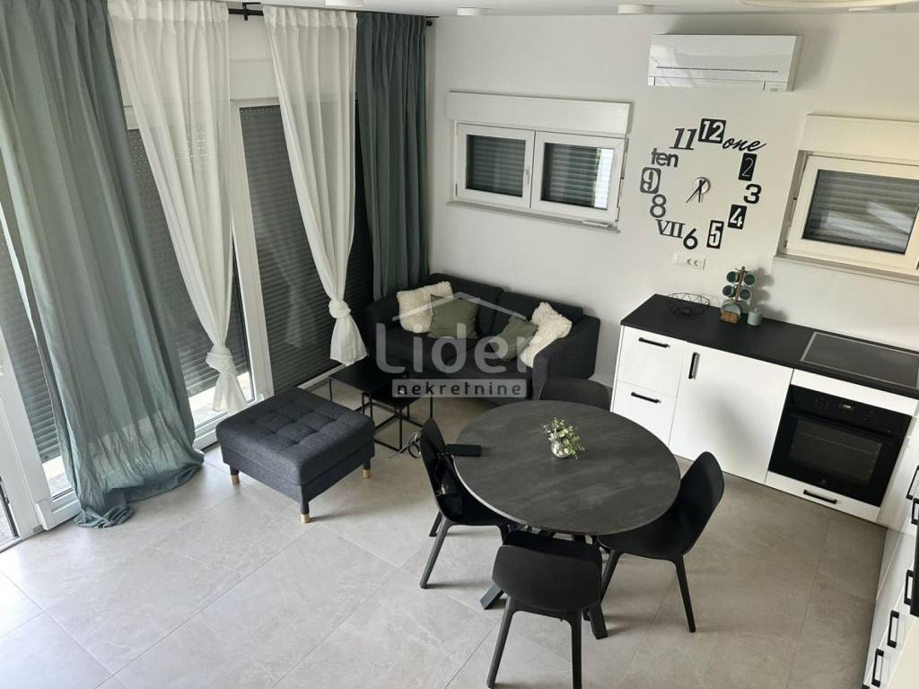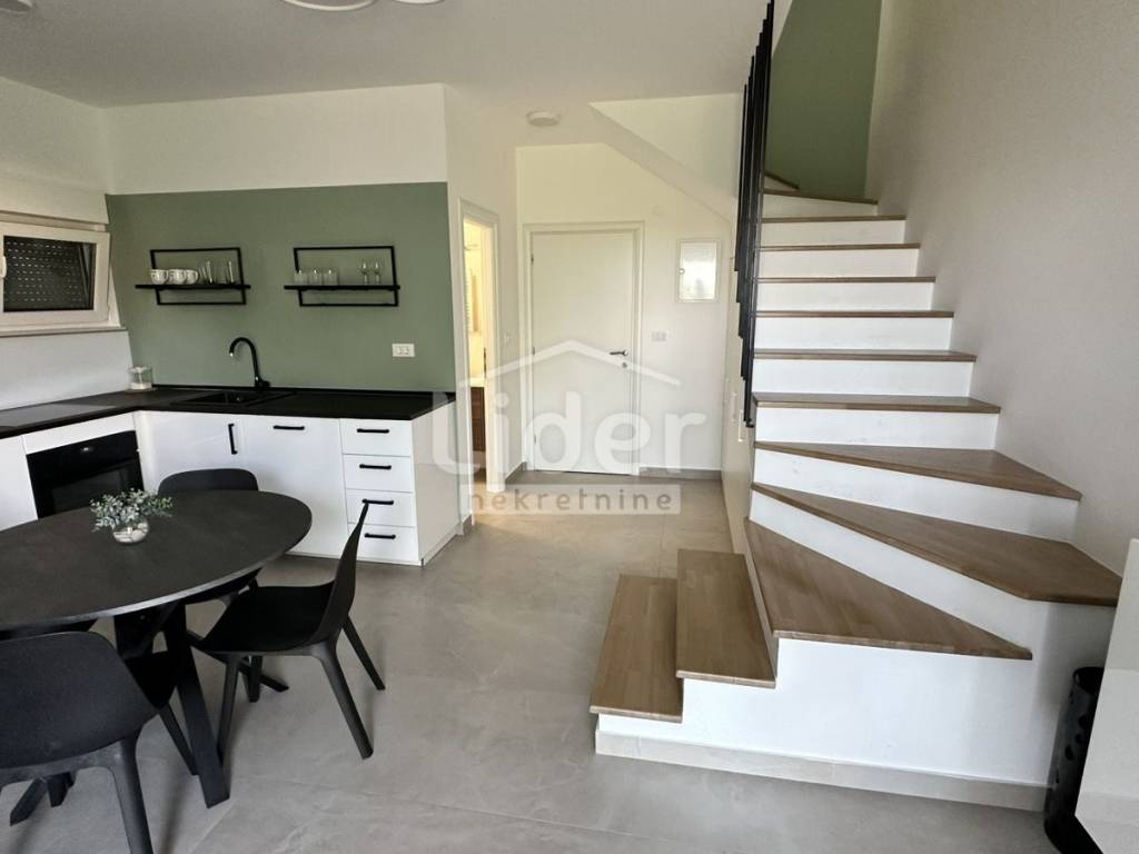 Kostrena, dugoročno iznajmljujemo prekrasan 1S+DB dvoetažni stan u novoj privatnoj kući na mirnoj lokaciji. Stan se sastoji od dnevnog boravka sa kuhinjom i kupaonicom u prizemlju, te spavaće sobe na katu. Stan je lijepo i moderno novo uređen, namješten i opremljen. Parking u ograđenom dvorištu.