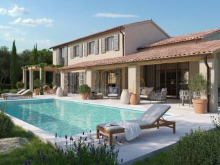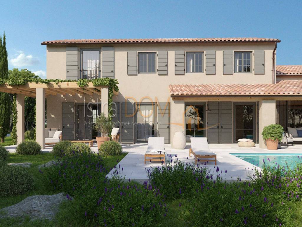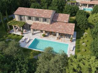 Stambeni prostori kuće, kroz vanjske terase, pružaju izravan kontakt s okolnim terenima i prekrasan otvoren pogled na prirodu, s bazenom koji je vidljiv i iz prizemlja i s prvog kata. Planirani završetak radova je travanj 2025.