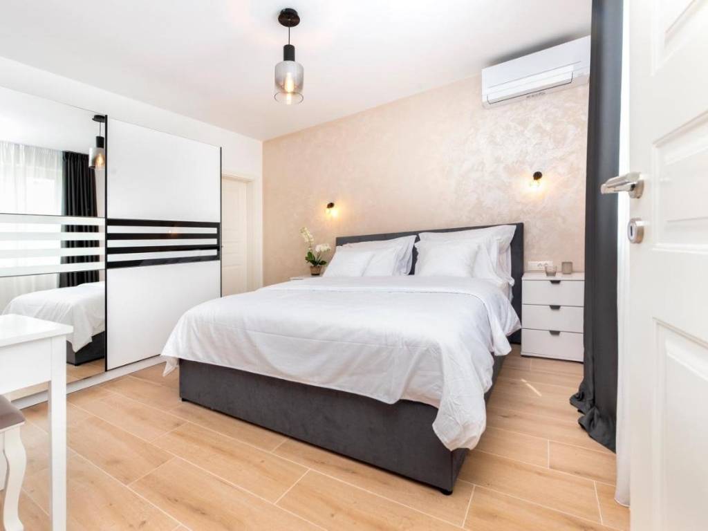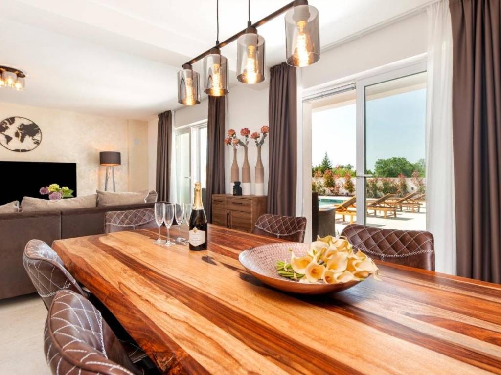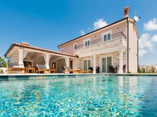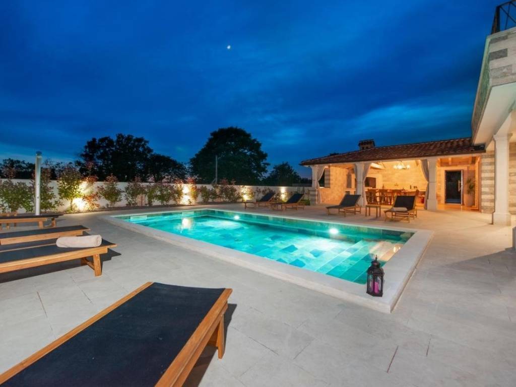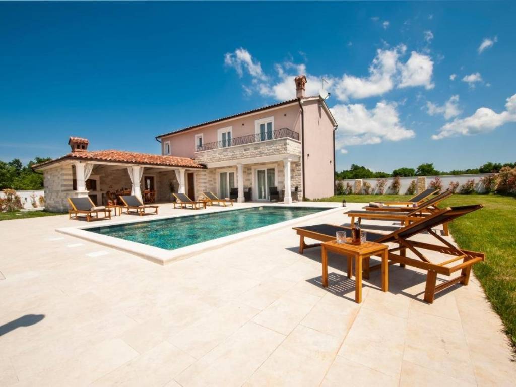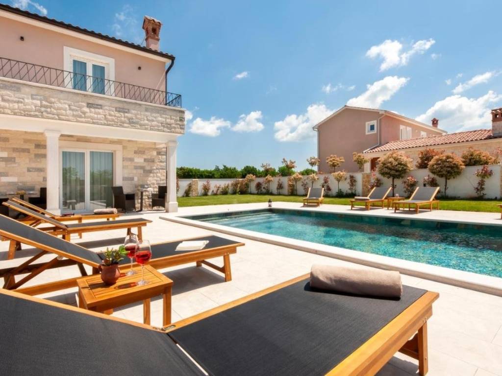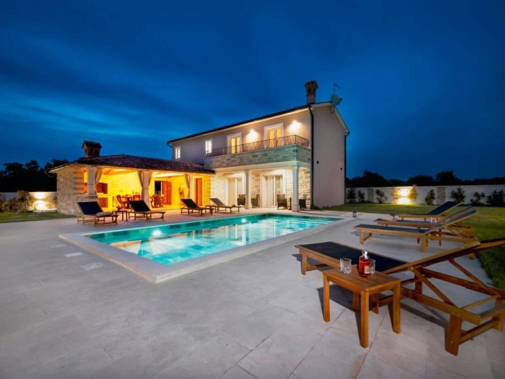 Predivna novoizgrađena vila s ukupnom površinom od 150m2 na prostranoj okućnici od 643m2. Malo mjesto u općini Žminj koja je odlično prometno povezana te omogućava dolazak do Rovinja, Poreča ili Pule u manje od 30 minuta vožnje. Ova elegantna vila prostire se na 2 etaže i nudi 4 spavaće sobe i 4 kupaonice što je čini idealnom za udoban boravak. Prizemlje je uređeno open space konceptom te povezuje kuhinju, blagovaonicu i dnevni boravak što omogućava prirodno strujanje svijetlosti i stvara ugodan ambijent za druženja. Na prizemlju se također nalazi jedna od četiri spavaće sobe sa svojom kupaonicom. Na katu se nalaze ostale 3 spavaće sobe, svaka sa svojom kupaonicom, a dvije spavaće imaju izlaz na zajedničku terasu s koje se pruža prekrasan pogled na prirodu. Vanjski prostor oduševljava natkrivenom terasom opremljenom kaminom i ljetom kuhinjom, savršenom za uživanje u toplim ljetnim večerima. Uz to, vila nudi i prekrasan vanjski bazen okružen uređenim sunčalištem i ležaljkama što će vam pružiti idealne trenutke odmora i opuštanja. Ova nekretnina je ograđena, osiguravajući privatnost i sigurnost, te nudi čak 6 parkirnih mjesta. Nekretnina sa uhodanim poslom najma i odličnim prihodima!