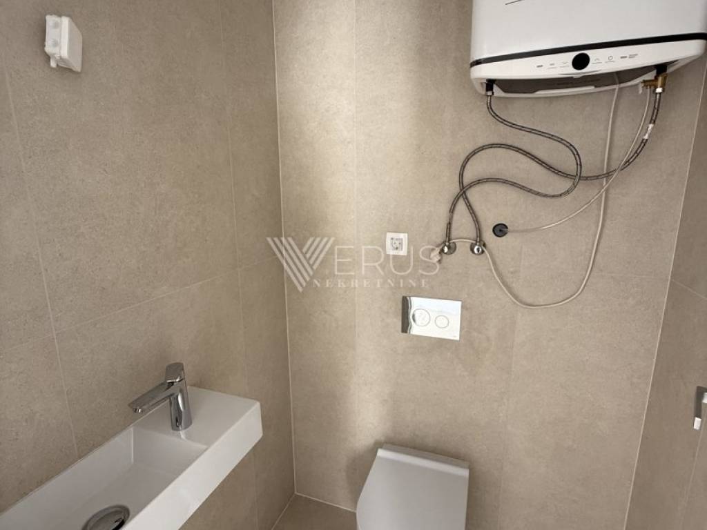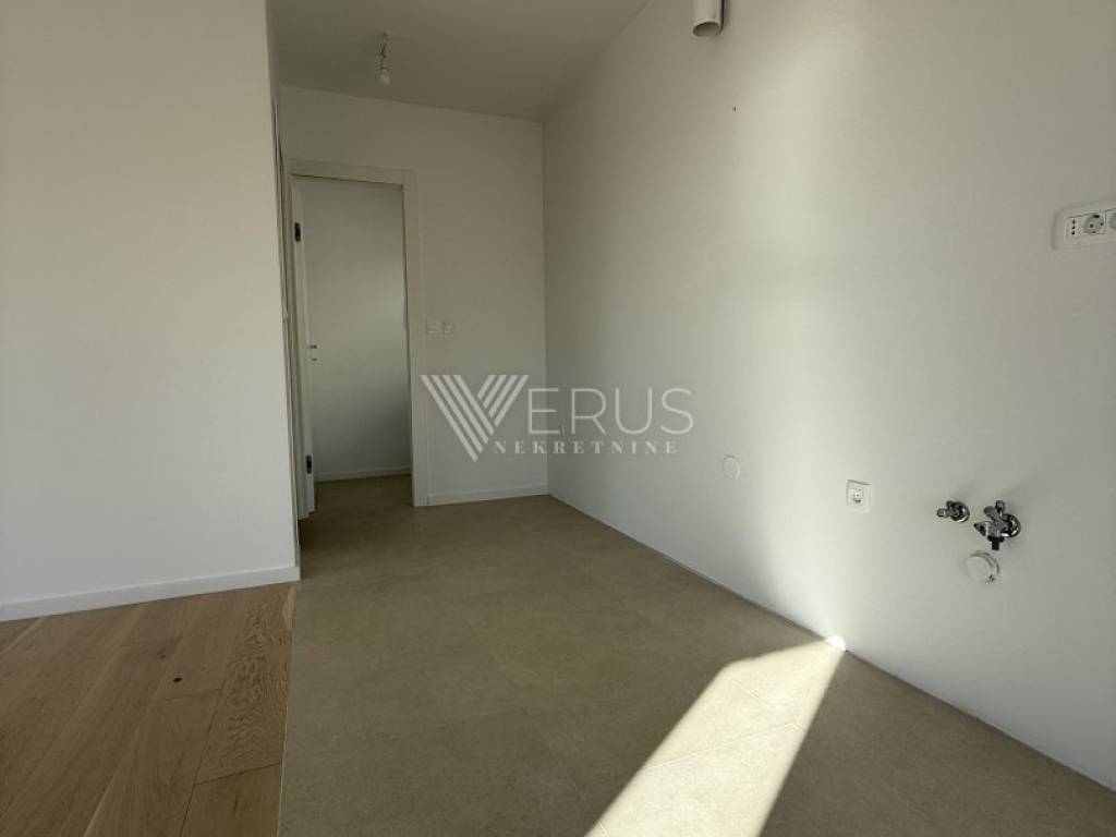 Posebna pažnja posvećena je izboru materijala i tehničkim rješenjima. Ugrađena je aluminijska stolarija, protuprovalna vrata, sustav podnog grijanja te moderno grijanje i hlađenje putem dizalice topline. Projekt je djelo renomiranog hrvatskog arhitektonskog studija, a izvedba odražava visoke standarde gradnje i suvremenog življenja. Stanu pripadaju dva vanjska parkirna mjesta unutar ograđene okućnice, a prodaje se po sistemu „ključ u ruke“, bez namještaja. Stan je potpuno dovršen i odmah useljiv.