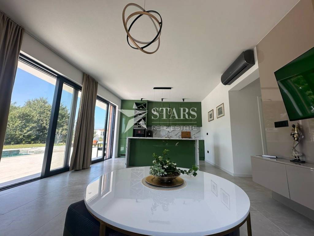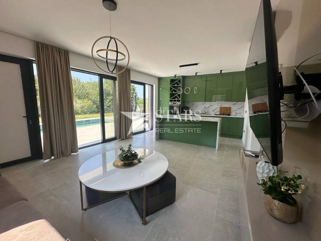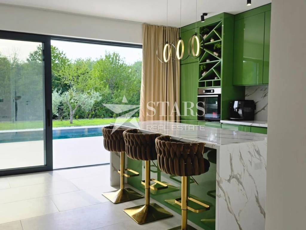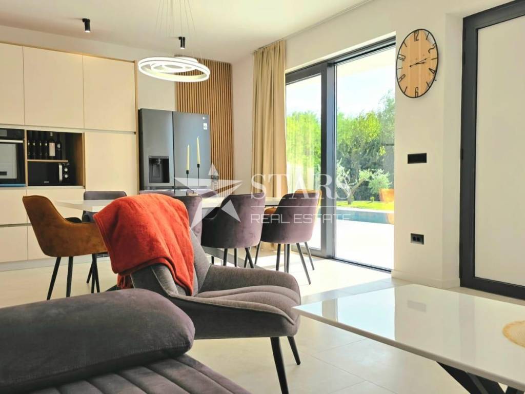 Vila se prodaje u potpunosti namještena i opremljena – odmah spremna za useljenje ili iznajmljivanje. Svaka prostorija ima klima jedinicu i podno grijanje, a pažljivo birani materijali i moderan dizajn čine boravak u kući izuzetno ugodnim i profinjenim.