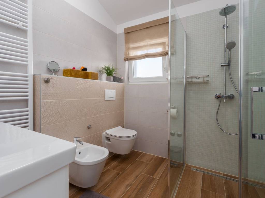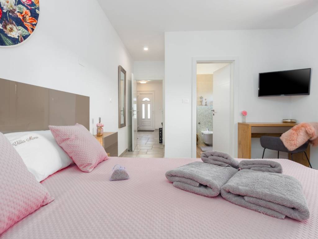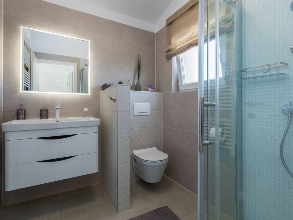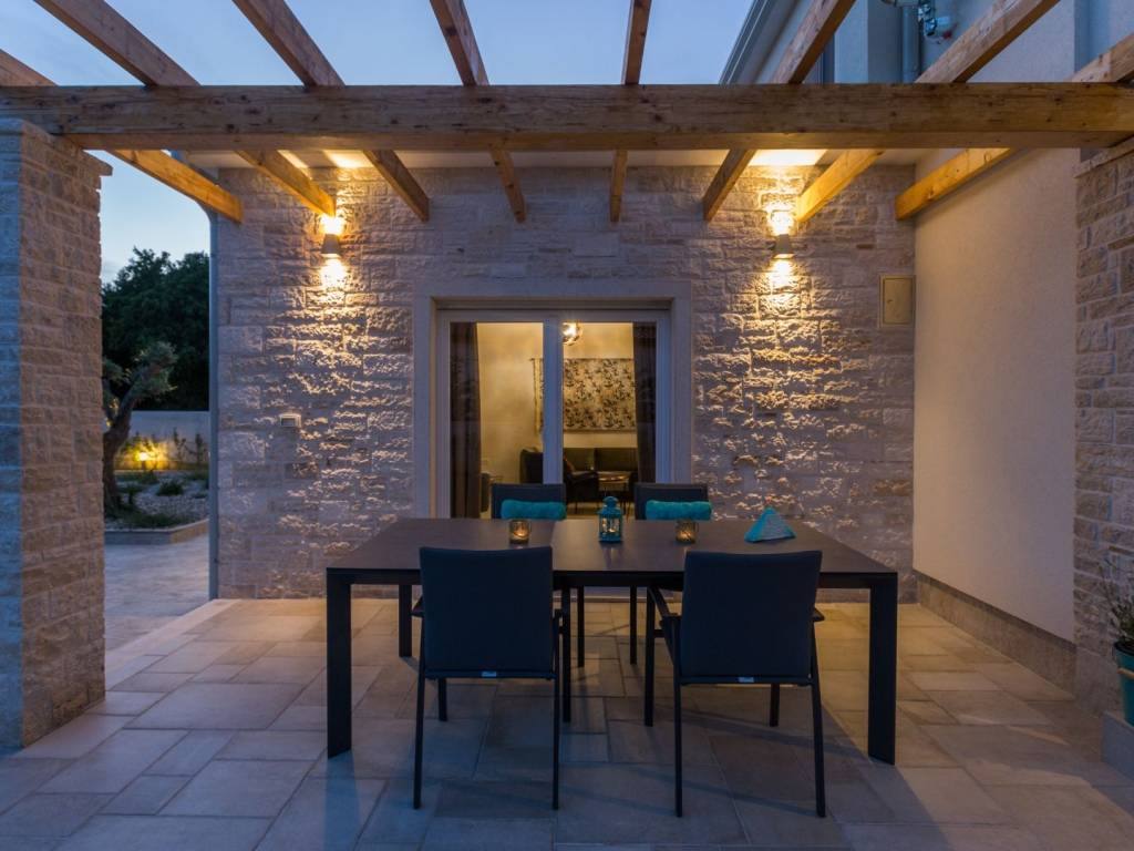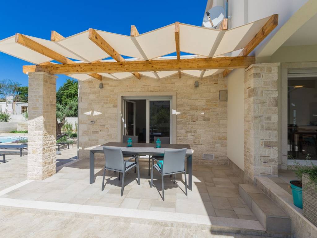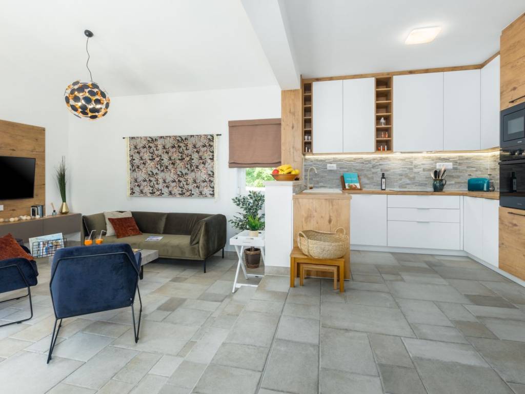 Predstavljamo vam ovu predivnu novu moderno oprelmljenu villu s bazenom koja se nalazi nedaleko Poreča, na mirnoj lokaciji. Villa ima ukupnu stambenu površinu od 140 m2 te ima ukupno tri moderno namještene spavaće sobe s grijanjem/hlađenjem, vlastitim kupaonicama i mrežama protiv komaraca na prozorima. Neposredno na ulazu u prizemlje imamo open space prostor gdje je dnevni boravak s kaminom povezan s moderno opremljenom kuhinjom i blagovaonicom, s izlazom na natkrivenu vanjsku terasu. U ovom dijelu prizemlja diskretno je odvojena spavaća soba s kupaonicom i gostinjskim wc-om. Unutarnje stepenice vode na prvi kat gdje se nalaze dvije spavaće sobe s kupaonicama i balkon s prekrasnim pogledom na okolicu. U središnjem dijelu vrta nalazi se bazen veličine 32 m² sa sunčalištem, okružen njegovanim travnjakom s mediteranskim biljem i maslinama. Dvorište koje je ograđeno sa svih strana pruža apsolutnu privatnost. Nekretnina ima već dobro uhodani posao najma. Više na upit.