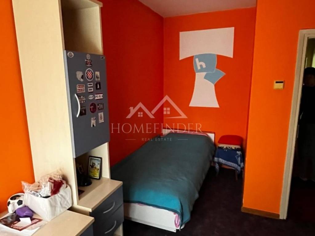 - Prvi kat: Dvije velike spavaće sobe, od kojih jedna ima balkon s pogledom na dvorište, dječja soba i kupaonica s WC-om.