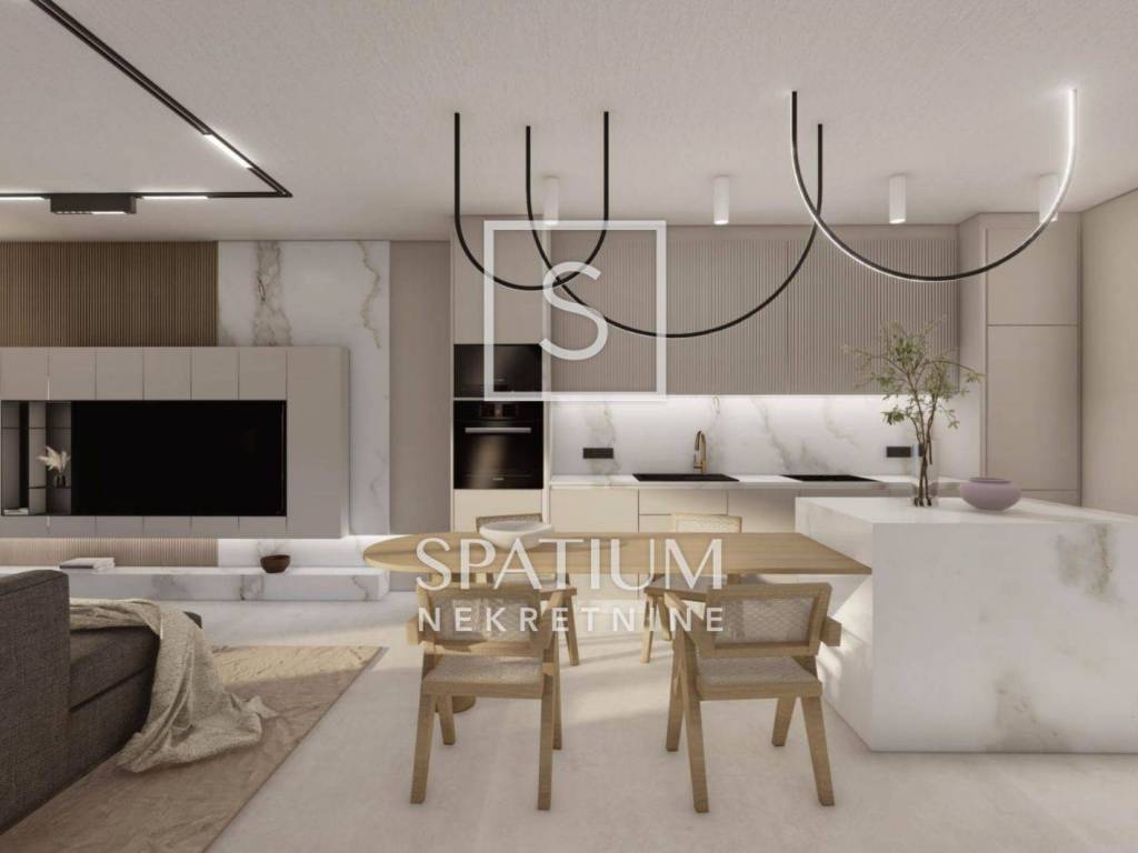 Stan se sastoji od spremišta s praonicom, ulaznog pretprostora, gostinjskog WC-a, dvije spavaće sobe, kupaonice, te open space kuhinje s blagovaonicom i dnevnim boravkom. Iz dnevnog boravka izlazi se na natkrivenu terasu koja vodi do ljetne kuhinje i natkrivenog privatnog bazena.
