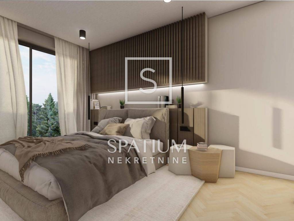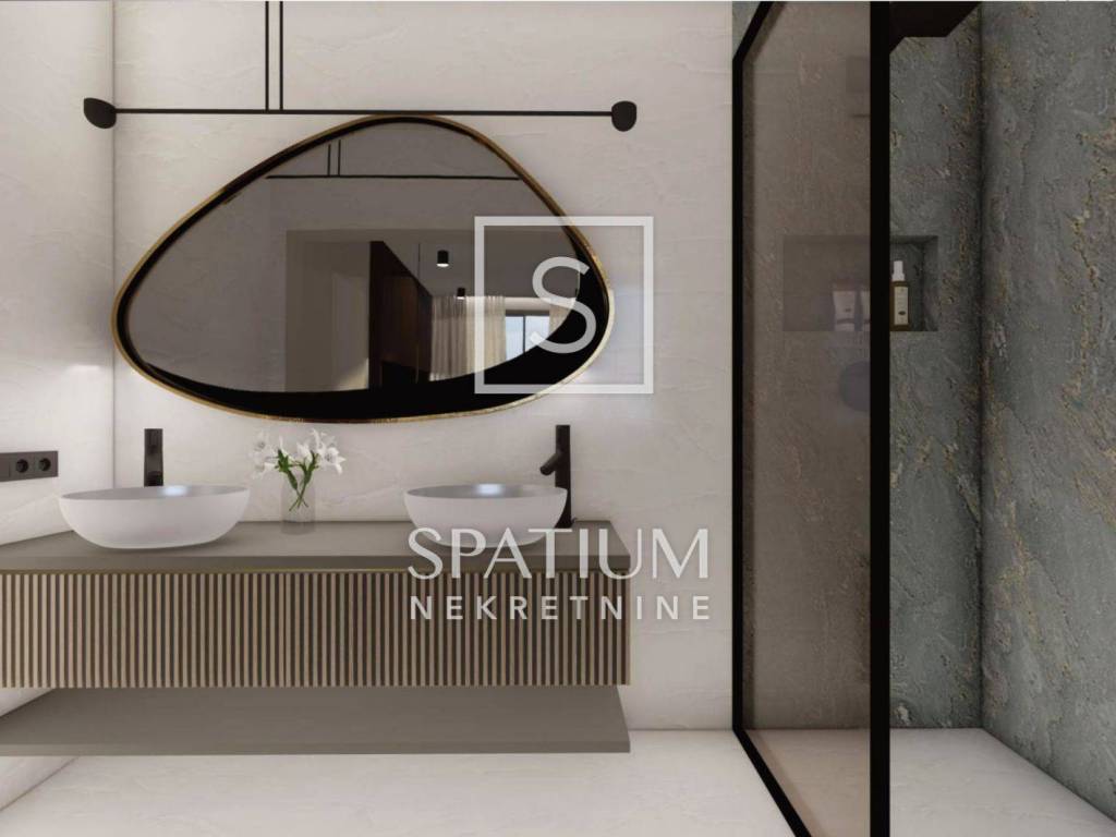 Stanu pripadaju dva parkirna mjesta te okućnica s bazenom veličine 20 m2. Zgrada u kojoj se stan nalazi izgrađena je od vrhunskih materijala i primjenom najmodernijih tehnologija. Opremljen je podnim grijanjem s dizalicom topline, kao i klima uređajima za hlađenje u ljetnim mjesecima.