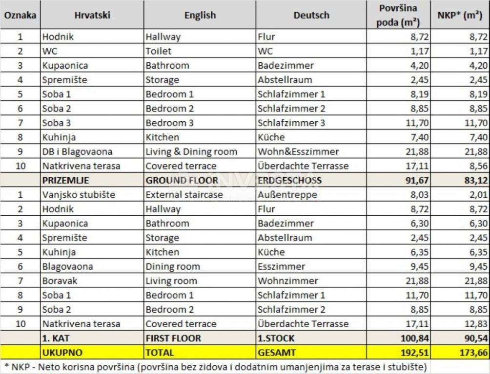 Površina objekta: 203 m² bruto razvijene površine / 174 m² neto korisne površine (NKP)