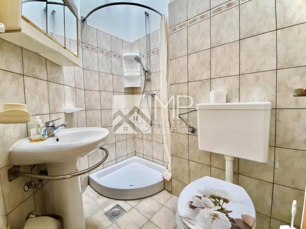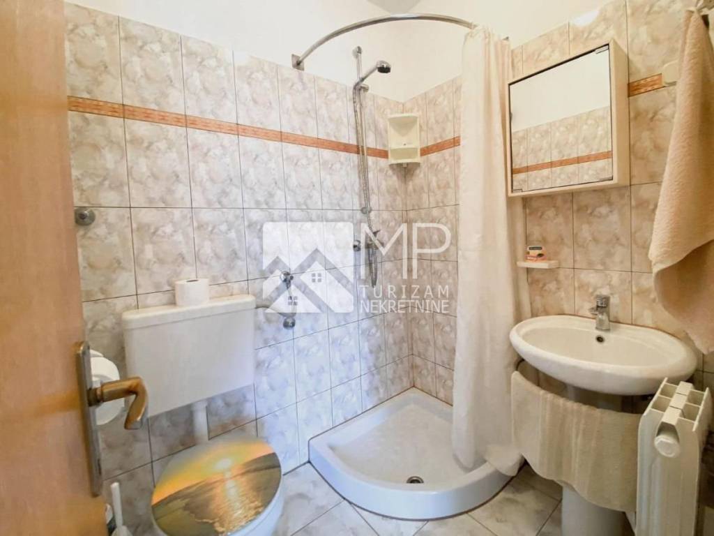 Na prvom katu se nalazi apartman površine 40 m2 do kojih se dolazi vanjskim stepenicama i ima jednu spavaću sobu.