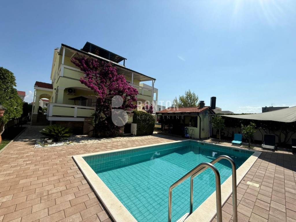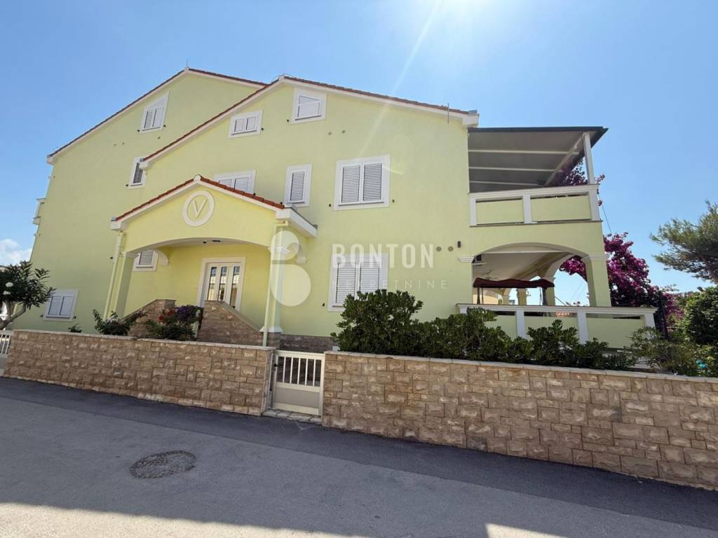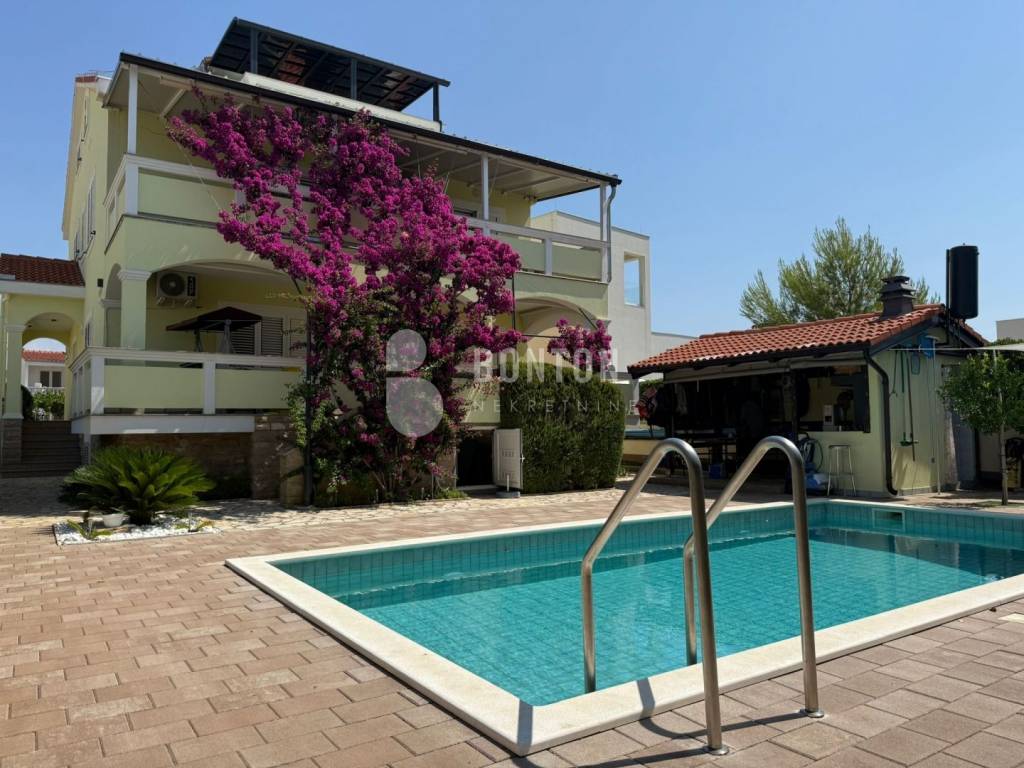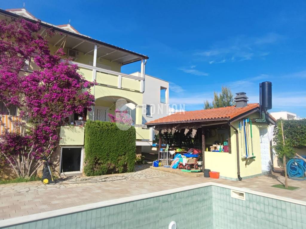 NOVO U PONUDI - Prekrasna Apartmanska kuća s 5 stambenih jedinica, garaže za 3 auta. Betonski bazen u dvorištu, vrtna kućica I roštilj. Ova nekretnina nudi brojne sadržaje i pogodnosti za ugodan boravak i uživanje u prostoru. Kuća je smještena 100 metara od Plaže Prezida, četvrta kuća od plaže. Atraktivna lokacija pruža mogućnost za turistički najam ili udoban obiteljski život. S pet stambenih jedinica, ova apartmanska kuća pruža mogućnost iznajmljivanja turistima ili obitelji te generira dodatni prihod. Garaža osigurava sigurno parkirno mjesto za vozila, dok betonski bazen od 32m2 u dvorištu pruža osvježenje i rekreaciju za stanare i goste. Dubina bazena u jednom djelu veća je od 2 metra te se može nesmetano skakati u vodu. Vlasnik je kupio Novu Pumpu za strojarnicu potrebnu za rad bazena. Vrtna kuća i roštilj stvaraju idealno mjesto za druženje na otvorenom, uživanje u obrocima na zraku i prirodnom okruženju. Solarni bojler za grijanje vode i Centralno grijanje na Lož ulje osigurava učinkovito korištenje energije i udobnost u svim stambenim jedinicama. KUĆA se sastoji od : Podrum i Suteren veličine 233m2, Stambenog dijela od 100m2 koji se može pretvoriti isto u stambeni dio. Garaže za 3 automobila, kotlovnica, vešeraj te cisterna.