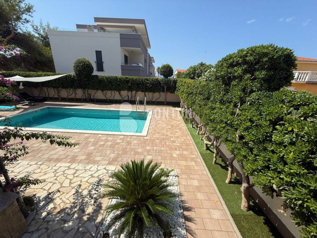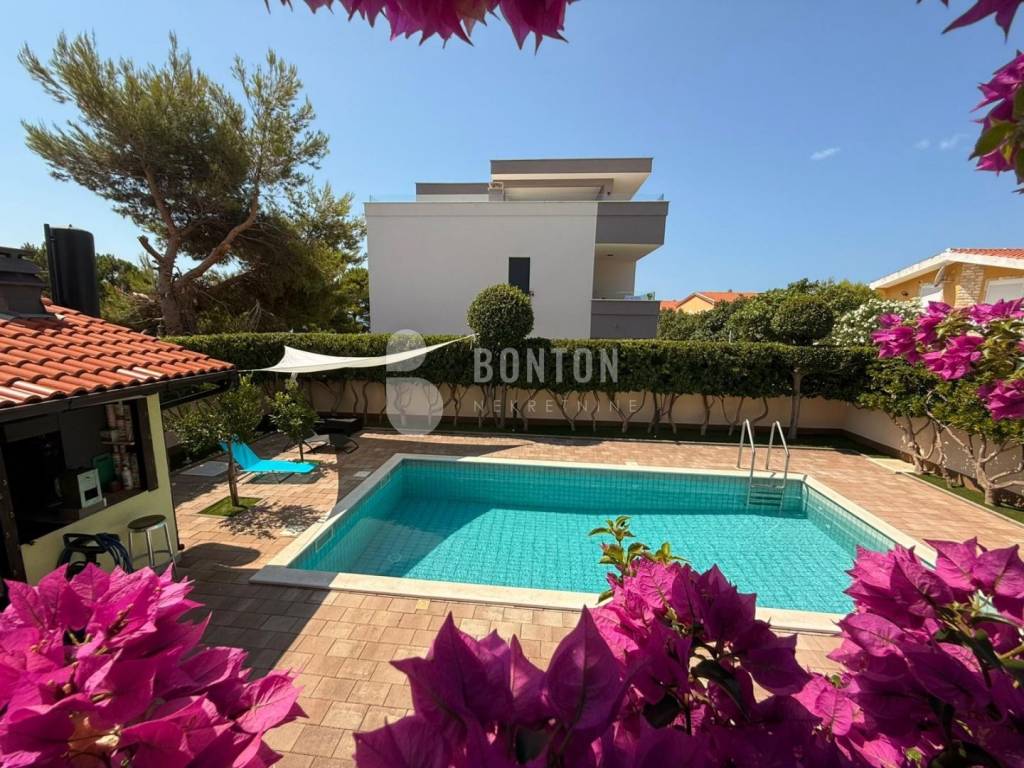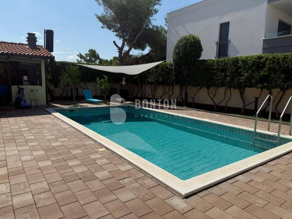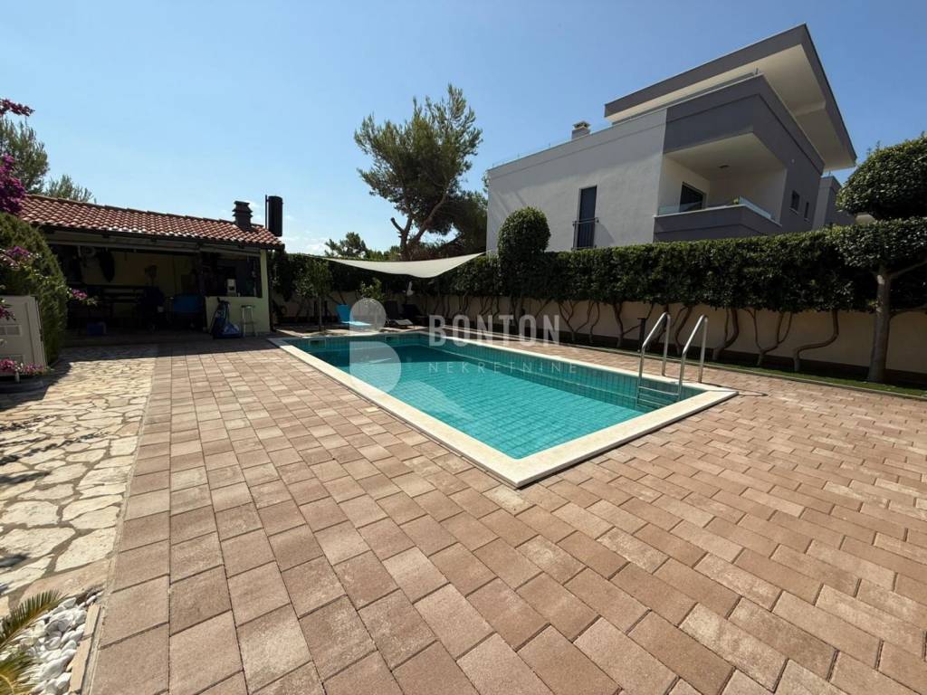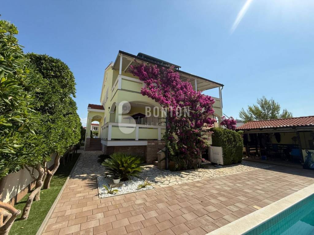 NOVO U PONUDI - Prekrasna Apartmanska kuća s 5 stambenih jedinica, garaže za 3 auta. Betonski bazen u dvorištu, vrtna kućica I roštilj. Ova nekretnina nudi brojne sadržaje i pogodnosti za ugodan boravak i uživanje u prostoru. Kuća je smještena 100 metara od Plaže Prezida, četvrta kuća od plaže. Atraktivna lokacija pruža mogućnost za turistički najam ili udoban obiteljski život. S pet stambenih jedinica, ova apartmanska kuća pruža mogućnost iznajmljivanja turistima ili obitelji te generira dodatni prihod. Garaža osigurava sigurno parkirno mjesto za vozila, dok betonski bazen od 32m2 u dvorištu pruža osvježenje i rekreaciju za stanare i goste. Dubina bazena u jednom djelu veća je od 2 metra te se može nesmetano skakati u vodu. Vlasnik je kupio Novu Pumpu za strojarnicu potrebnu za rad bazena. Vrtna kuća i roštilj stvaraju idealno mjesto za druženje na otvorenom, uživanje u obrocima na zraku i prirodnom okruženju. Solarni bojler za grijanje vode i Centralno grijanje na Lož ulje osigurava učinkovito korištenje energije i udobnost u svim stambenim jedinicama. KUĆA se sastoji od : Podrum i Suteren veličine 233m2, Stambenog dijela od 100m2 koji se može pretvoriti isto u stambeni dio. Garaže za 3 automobila, kotlovnica, vešeraj te cisterna.