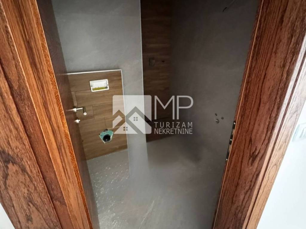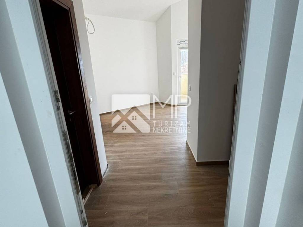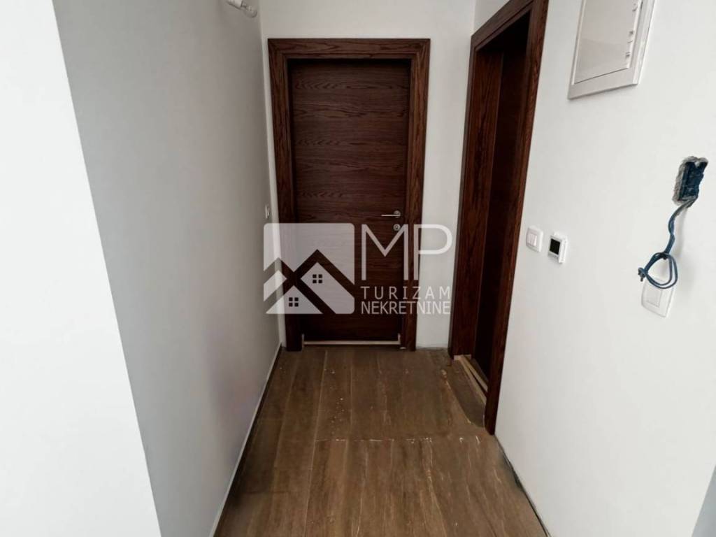 Stan je veličine 55m2, a sastoji se od ulaznog hodnika, dvije spavaće sobe, dnevnog boravka s kuhinjom i blagovaonicom, kupaonice i terase.
