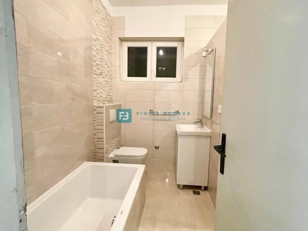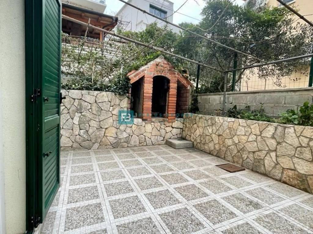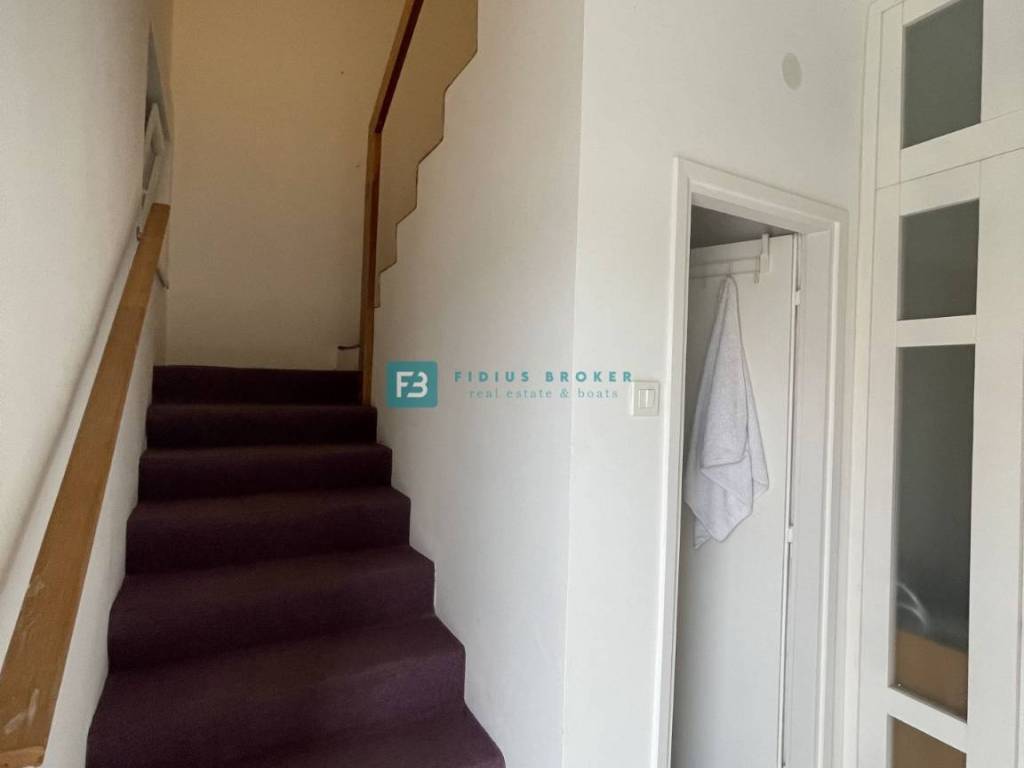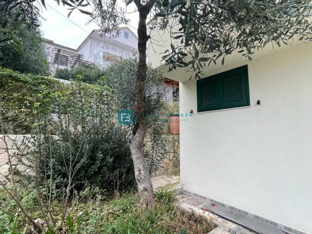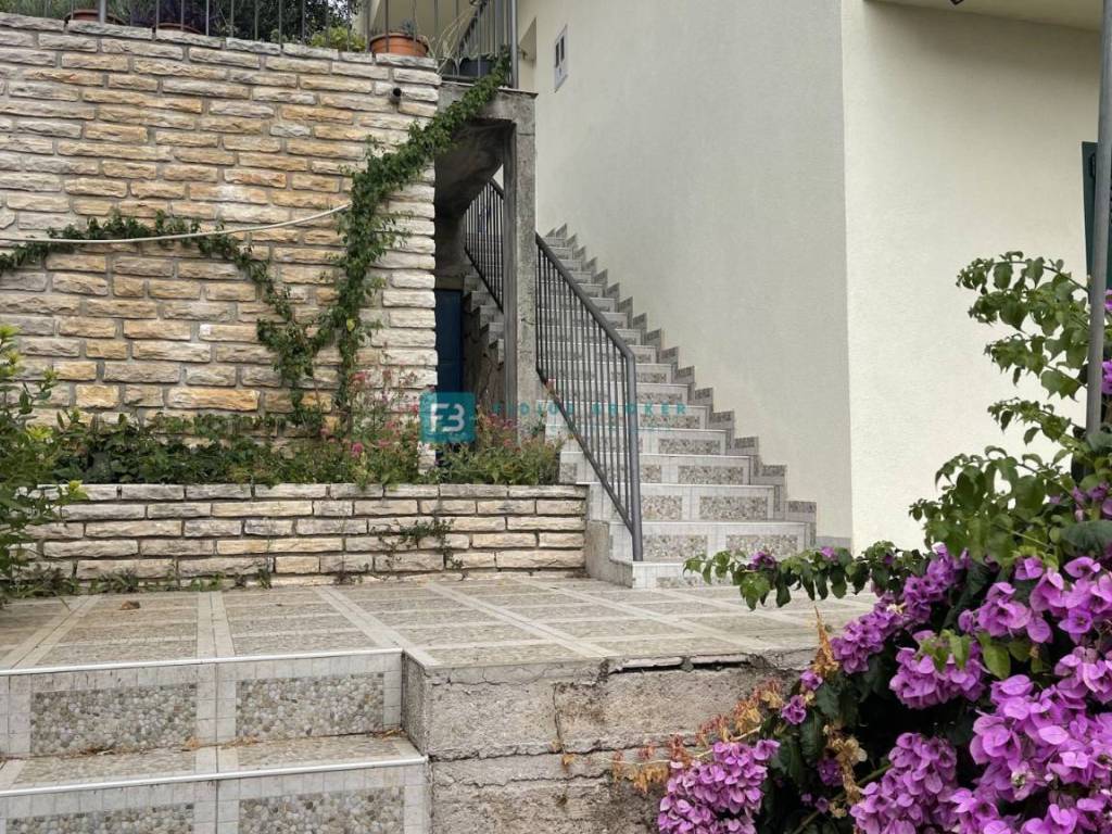 Samostojeća kuća ukupne površine 382,60 m2 izgrađena je na zemljištu površine 547 m2. Sastoji se od 4 etaže: suteren + visoko prizemlje + 1. kat + visoko potkrovlje. Suteren ukupne površine 45 m2 sastoji se od dvije odvojene prostorije, a ispred se nalazi terasa površine 17,60 m2 s koje se pruža pogled na more. Vanjskim stubištem dolazimo do visokog prizemlja brutto površine 110 m2 koje se sastoji od predsoblja, kupaonice, dvije velike spavaće sobe, dnevnog boravka s izlazom na terasu površine 12,80 m2, kuhinje s blagovaonicom s izlazom na terasu površine 18,50 m2. Zbog svog izvrsnog položaja sa terasa se pruža pogled na more i mjesto. Unutarnjim stubištem dolazimo na 1. kata ukupne površine 110 m2 koje se sastoji od 3 studio apartmana i 1 apartmana površine cca 35 m2. Svi apartmani su moderno uređeni i potpuno opremljeni (klima, TV) te spremni na nastavak uhodanog poslovanja. Visoko potkrovlje ukupne površine cca 100 m2 je nedovršeno i u Roh- Bau fazi, a s terase se pruža panoramski pogled na more i otočje.