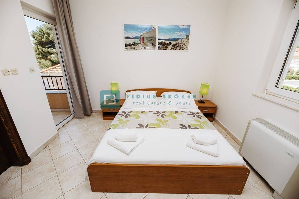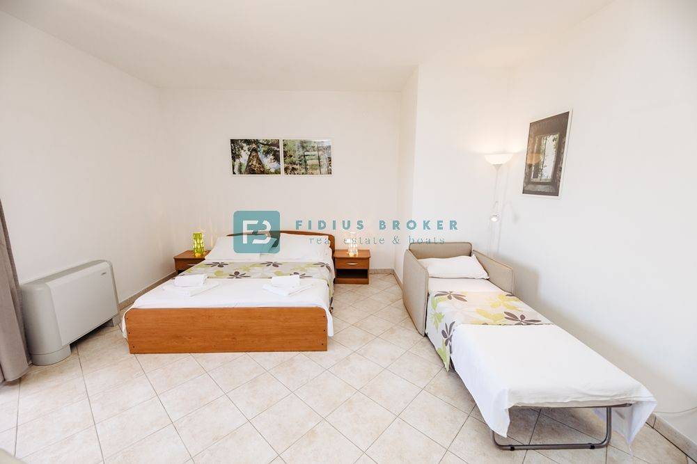 Odlična investicijska prilika – uhodani pansion s dugogodišnjim poslovanjem, smješten svega nekoliko minuta hoda od plaže i centra Tribunja. Objekt se nalazi u neposrednoj blizini marine, a iz soba se pruža predivan panoramski pogled na more i staru jezgru mjesta.