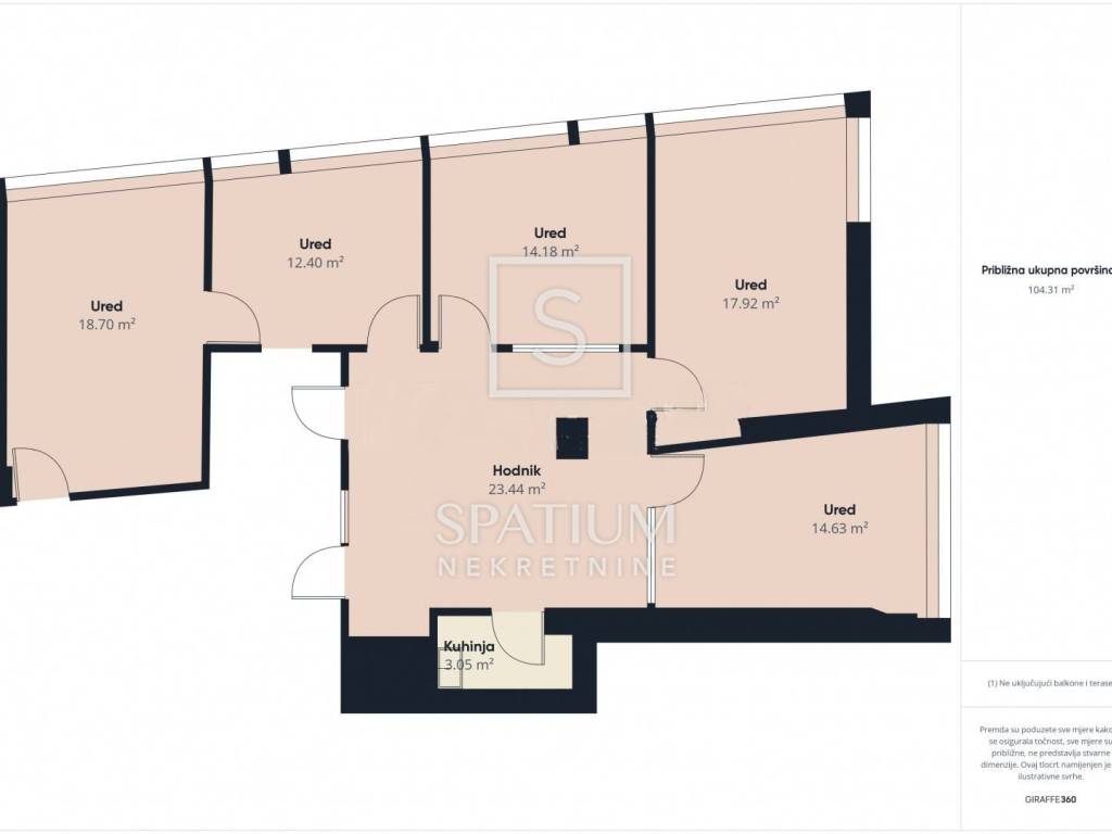 ⦁ 5 uredskih prostorija različitih kvadratura (18,70 m², 17,92 m², 14,63 m², 14,18 m² i 12,40 m²),