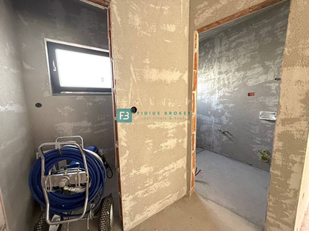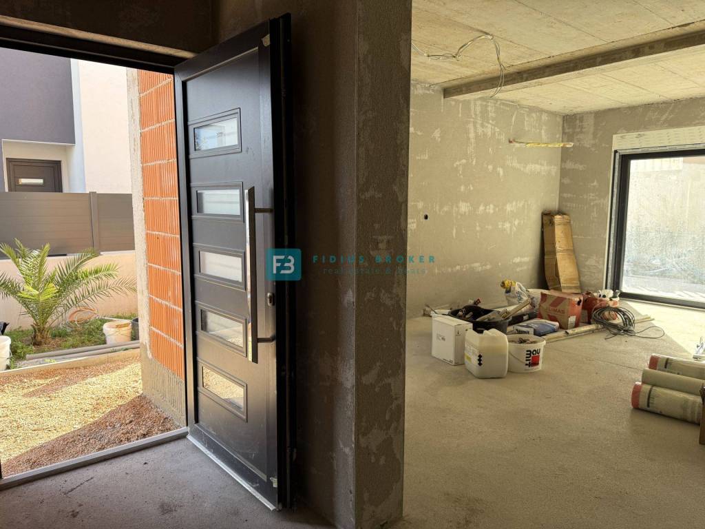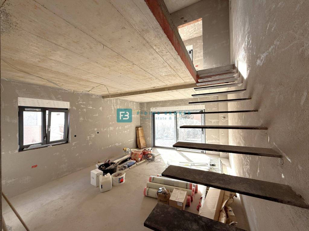 Krenula je izgradnja dvojnog objekta zanimljivog dizajna i funkcionalnog rasporeda. Nalazi se na atraktivnoj lokaciji, u izgrađenom dijelu grada koji je okružen obiteljskim kućama. Sastoji se od dvije etaže: prizemlje + kat. Velika prednost ove nekretnine je dvoetažni raspored, koji osigurava veću privatnost i omogućava komforniji način života. Uz to, svaka kuća ima vlastito dvorište, kao i po dva parkirna mjesta. Objekt se gradi kvalitetnim materijalima prema posljednjim standardima gradnje i biti će opremljen: stiropor fasada, protuprovalna vrata, PVC stolarija antracit boje, električni podizači s komarnicima, klima uređaj u dnevnom boravku te u svim spavaćim sobama, visokokvalitetne podne obloge, moderne kupaonske sanitarije, podno grijanje u kupaonicama i dnevnom boravku, konzolne stepenice obložene drvenom oblogom, staklena ograda na terasama. Planirani završetak radova i useljenje - ljeto 2026.godine.