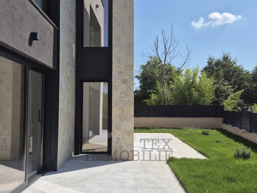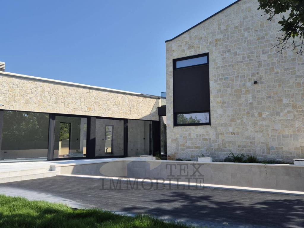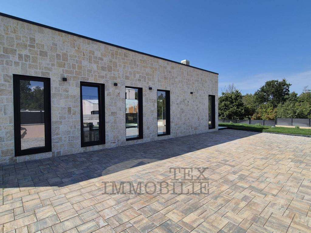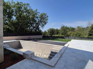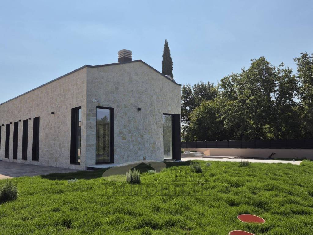 Na samo 4 km od obale Poreča, ova dizajnerska vila ukupne površine 168 m2 raspoređenih na dvije etaže, nalazi se na zemljištu od 749 m2.