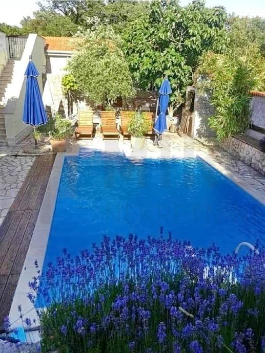 Otok Krk, Njivice, prodaja, samostojeća kuća s 5 apartmana i pomoćnim objektom s bazenom. Kuća je katnosti prizemlje i 1. kat, ukupne površine 400 m2, a u naravi se sastoji od 5 stambenih jedinica. U suterenu se nalazi 3- sobni apartman s natkrivenom terasom. U prizemlju se nalaze 2 apartmana, svaki sa svojim ulazom. Svaki ima po 2 spavaće sobe, kupaonu, kuhinju s blagovaonom, dnevni boravak s izlazima na prostranu okućnicu. Na prvom katu se nalazi 3- sobni apartman, s kupaonicom, kuhinjom, dnevnim boravkom, toaletom, i spremištem. Apartman također ima 2 terase, s kojih se pruža prekrasan pogled na more. Pomoćni objekat nudi još jedan studio apartman.