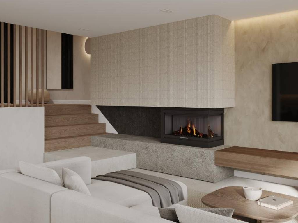 Zakoračite u svijet elegancije i modernosti, gdje visokokvalitetni materijali i kutni dizajn stvaraju sofisticiranu atmosferu. Tri spavaće sobe, svaka s vlastitom kupaonicom, nude luksuznu udobnost i privatnost. Uživajte u prostranim dnevnim prostorima obasjanim prirodnim svjetlom, uključujući otvorenu kuhinju idealnu za kulinarske užitke. Centralni kamin potiče ugodna okupljanja, dok suvremeni dizajnerski elementi evociraju toplinu i stil kroz cijeli prostor.