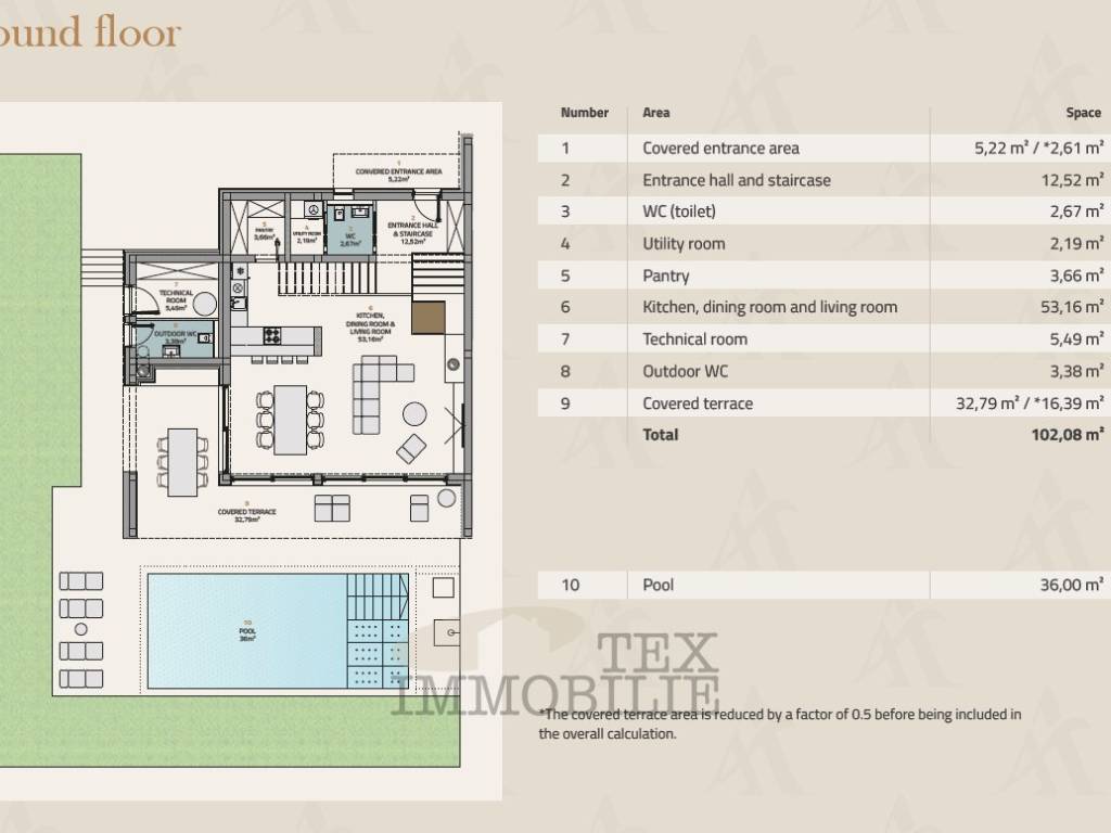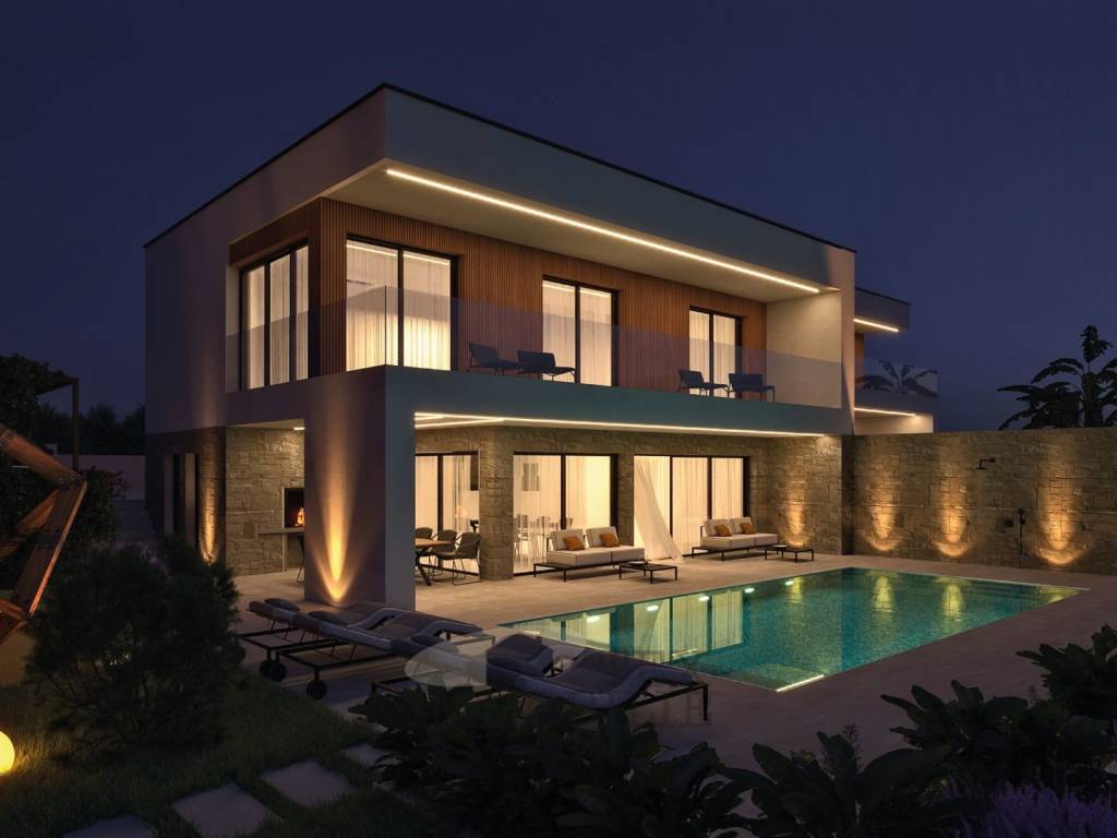 Materijali i oprema: Hans Grohe slavine i Geberit odvodni sustavi, talijanske ili portugalske keramičke pločice, elegantnu vanjsku rasvjetu i nadstrešnicu za dva vozila. Opcionalna nadogradnja poput solarnih panela, pametnih kućnih sustava i grijanih bazena zadovoljavaju individualne preferencije, osiguravajući doista personalizirano iskustvo življenja.
