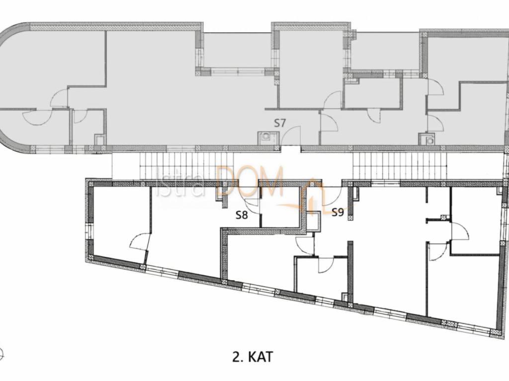 Prodaje se peterosoban stan površine 110 m2 na drugom katu zgrade bez lifta. Zgrada ukupno ima 2 kata te se sastoji od prizemlja, prvog kata i drugog kata.