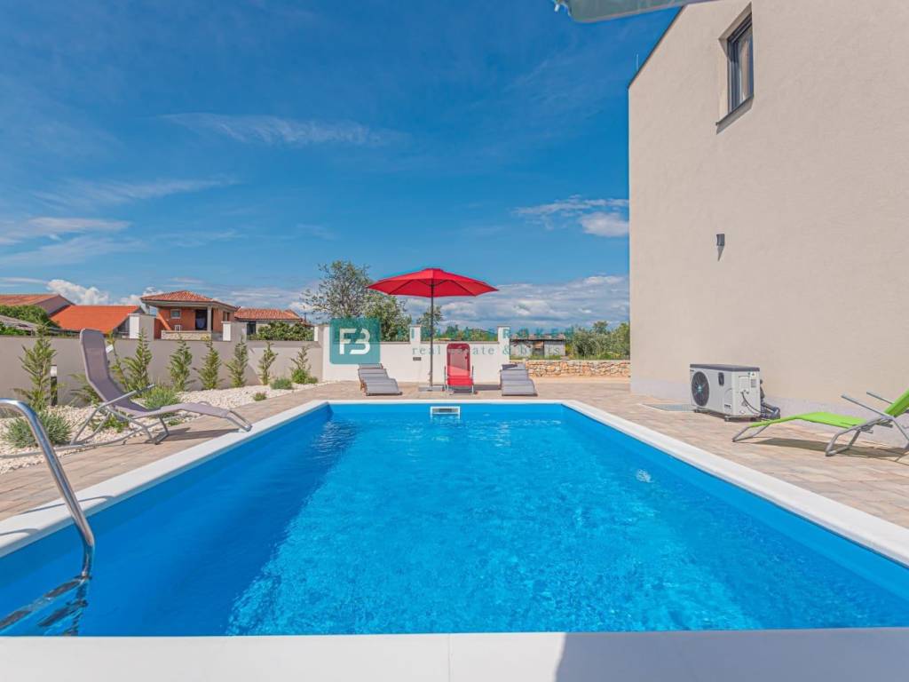 ŠIBENIK, naselje BOGDANOVIĆI - Prodaje se nova namještena dvojna kuća s grijanim bazenom i prostranom okućnicom.