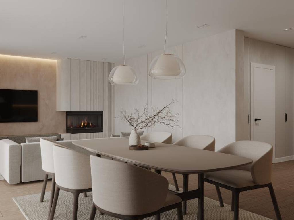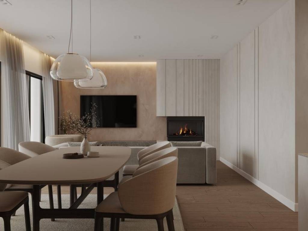 Zakoračite u svijet elegancije i modernosti, gdje visokokvalitetni materijali i kutni dizajn stvaraju sofisticiranu atmosferu. Tri spavaće sobe, svaka s vlastitom kupaonicom, nude luksuznu udobnost i privatnost. Uživajte u prostranim dnevnim prostorima obasjanim prirodnim svjetlom, uključujući otvorenu kuhinju idealnu za kulinarske užitke. Centralni kamin potiče ugodna okupljanja, dok suvremeni dizajnerski elementi evociraju toplinu i stil kroz cijeli prostor.