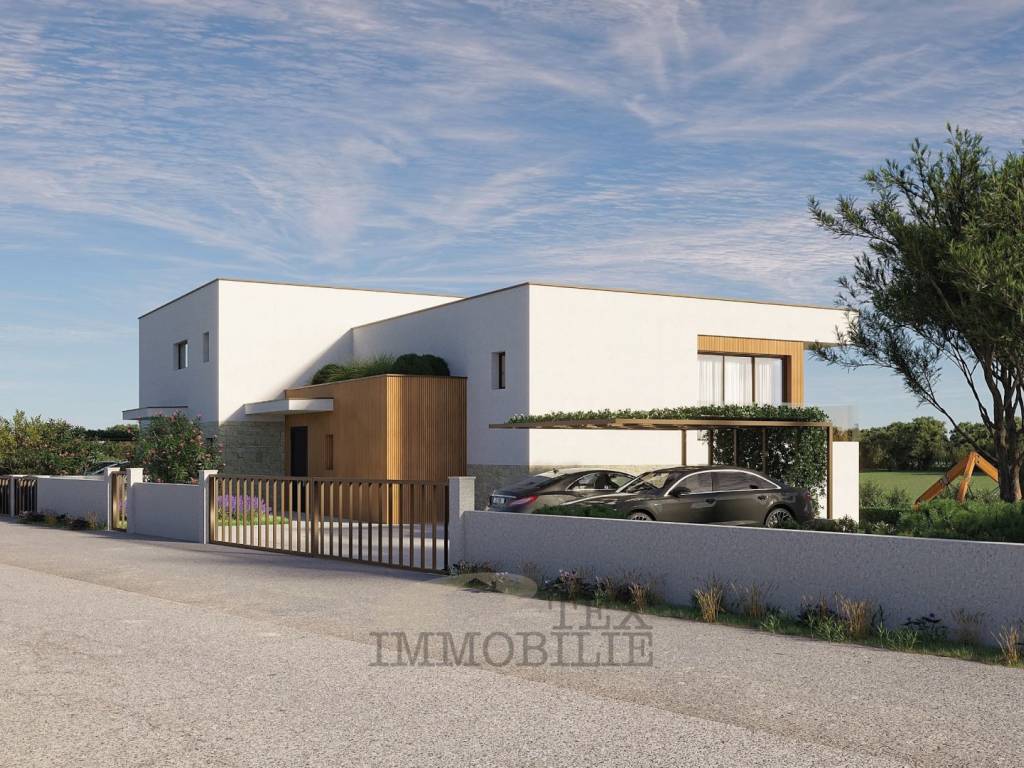 Materijali i oprema: Hans Grohe slavine i Geberit odvodni sustavi, talijanske ili portugalske keramičke pločice, elegantnu vanjsku rasvjetu i nadstrešnicu za dva vozila. Opcionalna nadogradnja poput solarnih panela, pametnih kućnih sustava i grijanih bazena zadovoljavaju individualne preferencije, osiguravajući doista personalizirano iskustvo življenja.