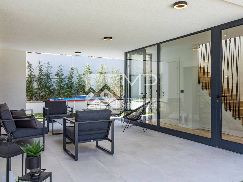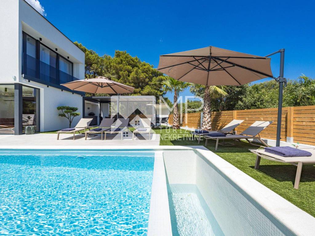 Zamislite jutro u kojem vas budi sunce dok lagano prolazi kroz prostrane prozore moderne vile. U ruci držite kavu, a pred vama se prostire privatni vrt i bazen sa slanom vodom, savršeno uređen za potpuni odmor i opuštanje. Ovo nije san – ovo je vaša vila u Medulinu.