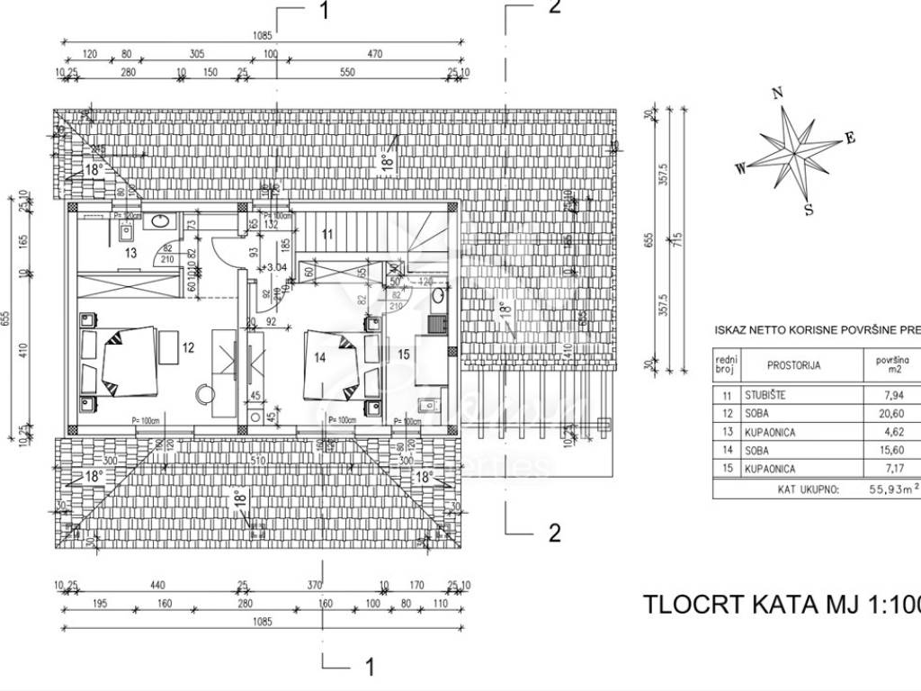 Kat je osmišljen kao privatna zona s dvije prostrane spavaće sobe i kupaonom. Kuća je u potpunosti opremljena kompletnom vanjskom stolarijom, čime su stvoreni kvalitetni temelji za završne radove i personalizaciju interijera prema vlastitom stilu. Na parcelu je doveden priključak i struje i vode.