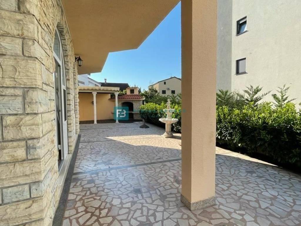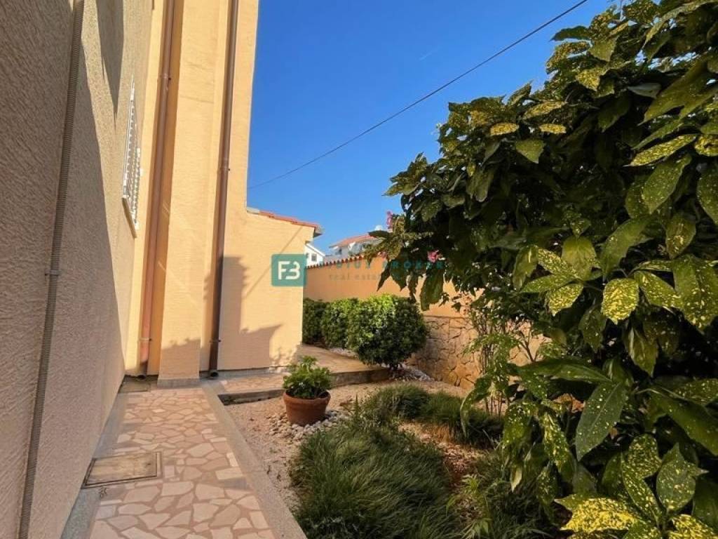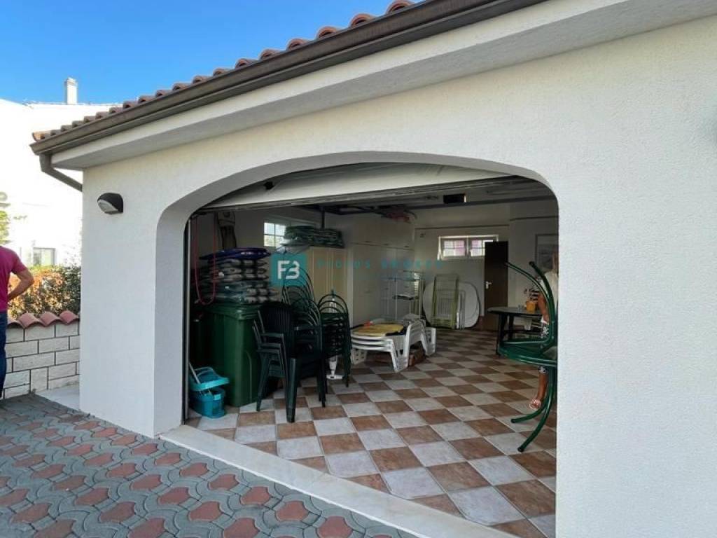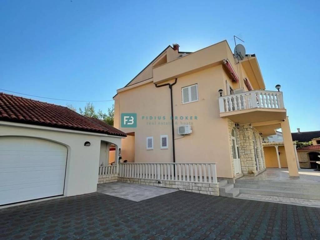 Kuća je u potpunosti opremljena namještajem te se kao takva i prodaje, ALU stolarija s komarnicima, stiropor fasada, stubište obloženo mramorom. U svim stambenim jedinicama su postavljeni klima uređaji. Prvi kat i visoko potkrovlje imaju instalirano centralno grijanje na lož ulje, a kuća ima i protuprovalni alarm te video nadzor. U lijepo uređenom i popločanom dvorištu se nalazi veliki roštilj i prostor za druženje, vanjski tuš. U dvorištu se nalazi pomoćna zgrada s garažom površine 48 m2, ljetnom kuhinjom / praonicom površine 15 m3. Dvorište ima veliki parkirni prostor, iza kuće je spremište u kojem se nalazi kotlovnica površine 10 m2. Do mora i plaže vodi privatan, popločan put od 30m koji pripada kući.