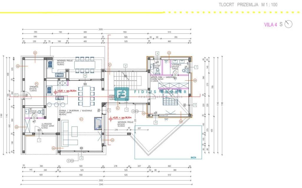 Vila Patricia (V1) - ukupna bruto/neto površina = 374,95 m2 / 319,06 m2 = 1.650.000 €