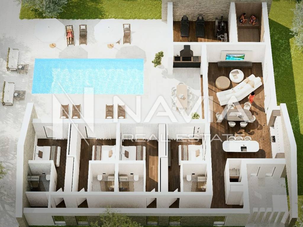 4 prostrane spavaće sobe i 4 moderno uređene kupaonice, dizajnirane za maksimalnu udobnost.
