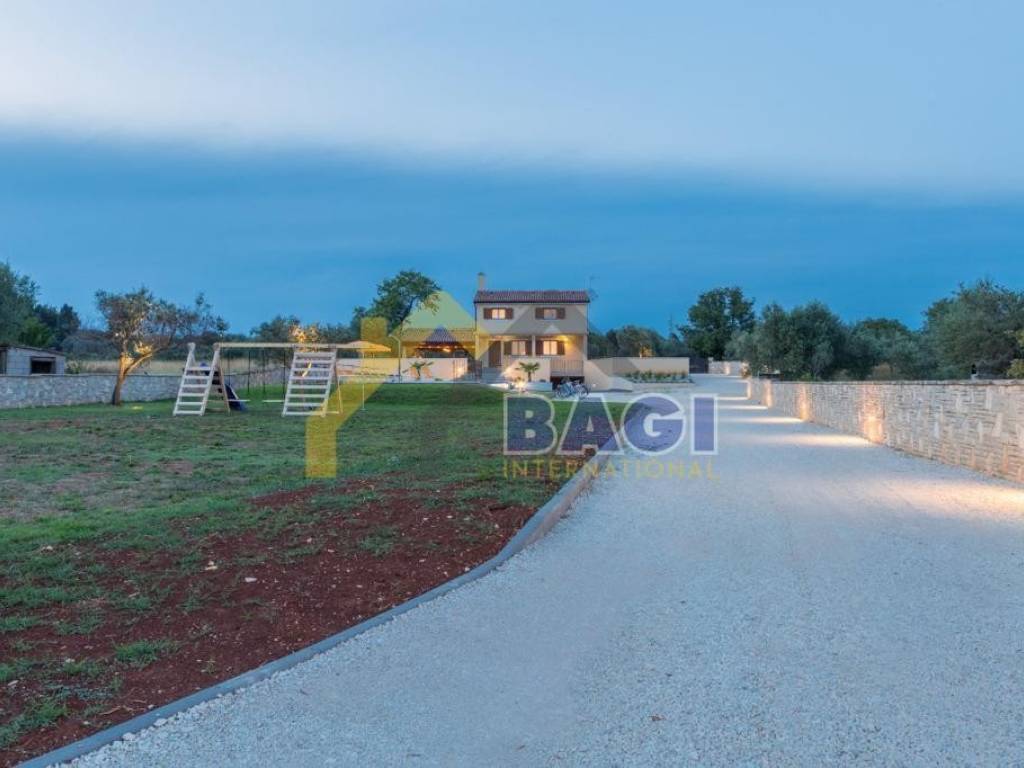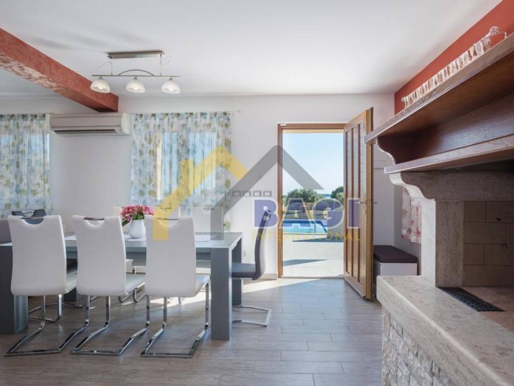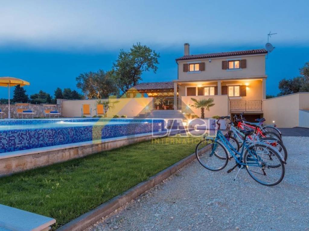 Na prodaju nekretnina koja se ističe svojom lokacijom, nalazi se na osami i budućem vlasniku nudi potupnu privatnost dok se centar Fažane i prve plaže nalaze na udaljenosti od svega 800 metara. Vila nudi prelijepi pogled na more i brijunsko otočje. Villa ima 180 m2 stambenog prostora i 2300 m2 okućnice, a sastoji se od prizemlja i kata. U prizemlju se nalazi prostran dnevni boravak s kaminom i izlazom na natkrivenu terasu te kuhinju s blagovaonicom i toaletom. Na katu se nalazi hodnik, tri spavaće sobe iz kojih se pruža predivan pogled na more te jedna velika kupaonica. . Okućnicu vile treba naglasiti, koja se prostire na 2300 M2. Ograđena kamenim zidom, veliki bazen okružen zelenilom i prelijepim stabalima masline. . Pripada joj podrum i garaža, te mogućnost više parkirnih mjesta. . Za sve dodatne informacije i razgledavanje kontaktirajte naše agente na broj +385 91 150 9059