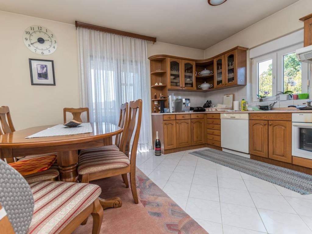 U prizemlju kuće nalazi se jednosoban stan sa posebnim ulazom.Vanjsko stubište povezuje međusobno sve etaže, na prvom katu hodnik vodi u dva zasebna stana koji nude po 2 spavaće sobe , dnevni boravak skuhinjom i trpezarijom , kupaonica i baklon.