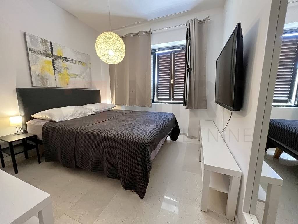 Otok Krk, grad Krk, novouređeni penthouse prvi red do mora. Apartman je renoviranom u modernom stilu i pozicioniran na 2. etaži obiteljske kuće. Apartman zauzima prostor ukupne površine 100 m2. Ovom površinom su obuhvaćeni dnevni boravak i kuhinja, 3 sp.s., 2 kup., 1 wc, velika natkrivena terasa s otvorenim pogledom na more. Nekretnina je potpuno novouređena i opremljena kvalitetnom keramikom i stolarijom. Ima podno grijanje u svim prostorijama. Uz apartman, novi vlasnik nekretnine na raspolaganju ima dva natkrivena parkirna mjesta. Nekretnina je u vlasništvu fizičke osobe. Prodavatelj stana jamči urednu vlasničku dokumentaciju te brz prijenos vlasništva. Posjetite nas i pronađite kvadrat vašeg doma!