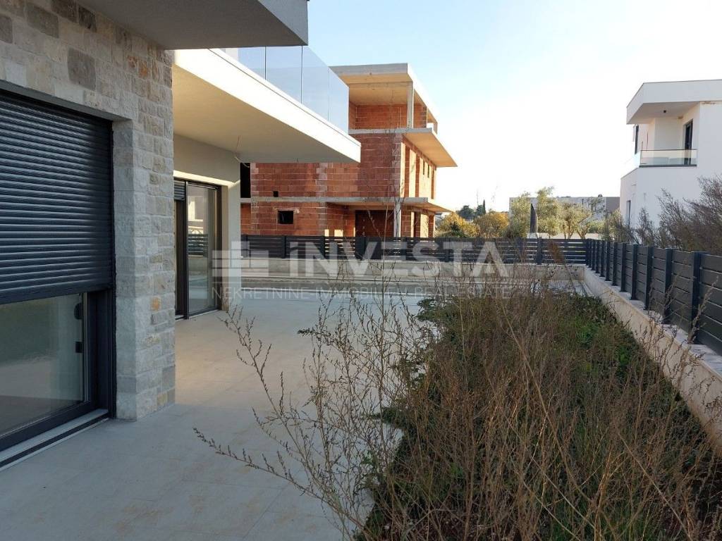 Iz dnevnog boravka izlazi se na dvije terase – jednu predviđenu za sunčalište, a drugu za druženje uz bazen. Vanjski prostor nudi odličnu osnovu za uređenje mediteranskog vrta, prostoru za roštilj ili lounge kutka.
