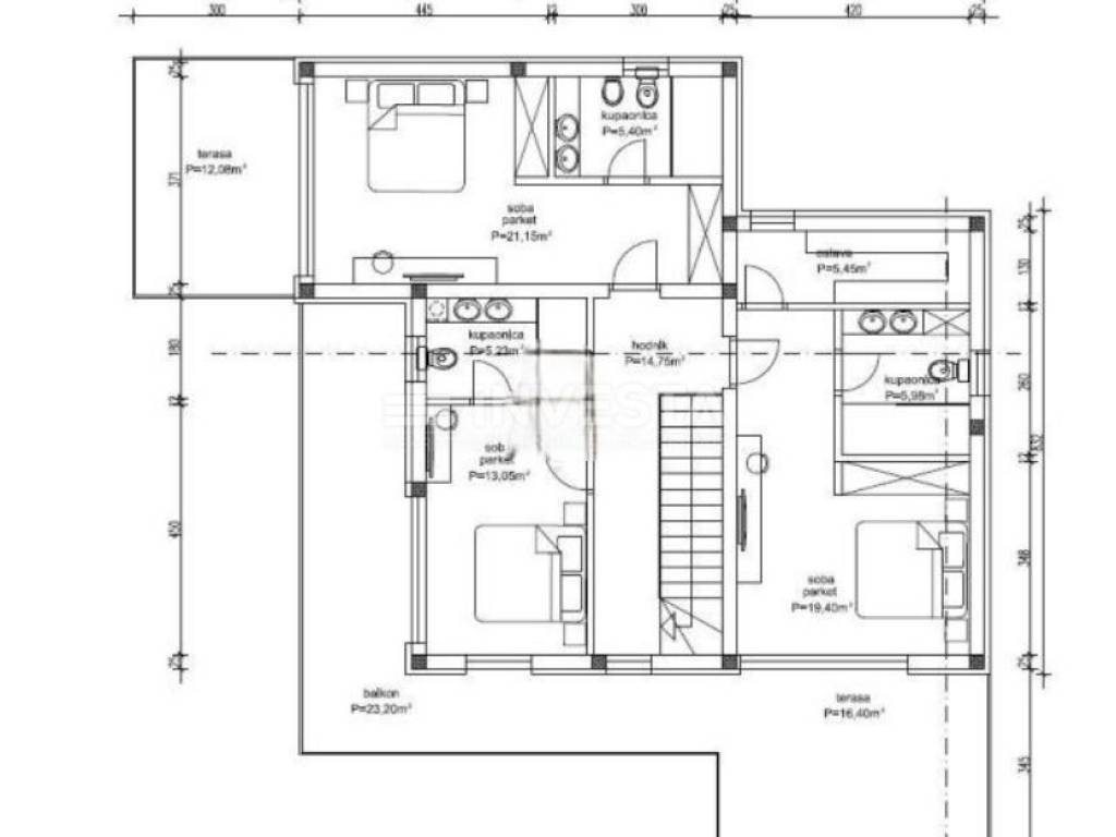 Jedna soba ima intimni privatni balkon, dok preostale dvije dijele veliku zajedničku terasu s koje se pruža lijep pogled na okolinu. Zbog velikih staklenih površina, prostorije su vrlo svijetle i iznimno ugodne.