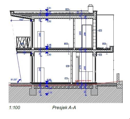 Krovna konstrukcija: armiranobetonska ploča debljine 18 cm , toplinska i hidro izolacija .