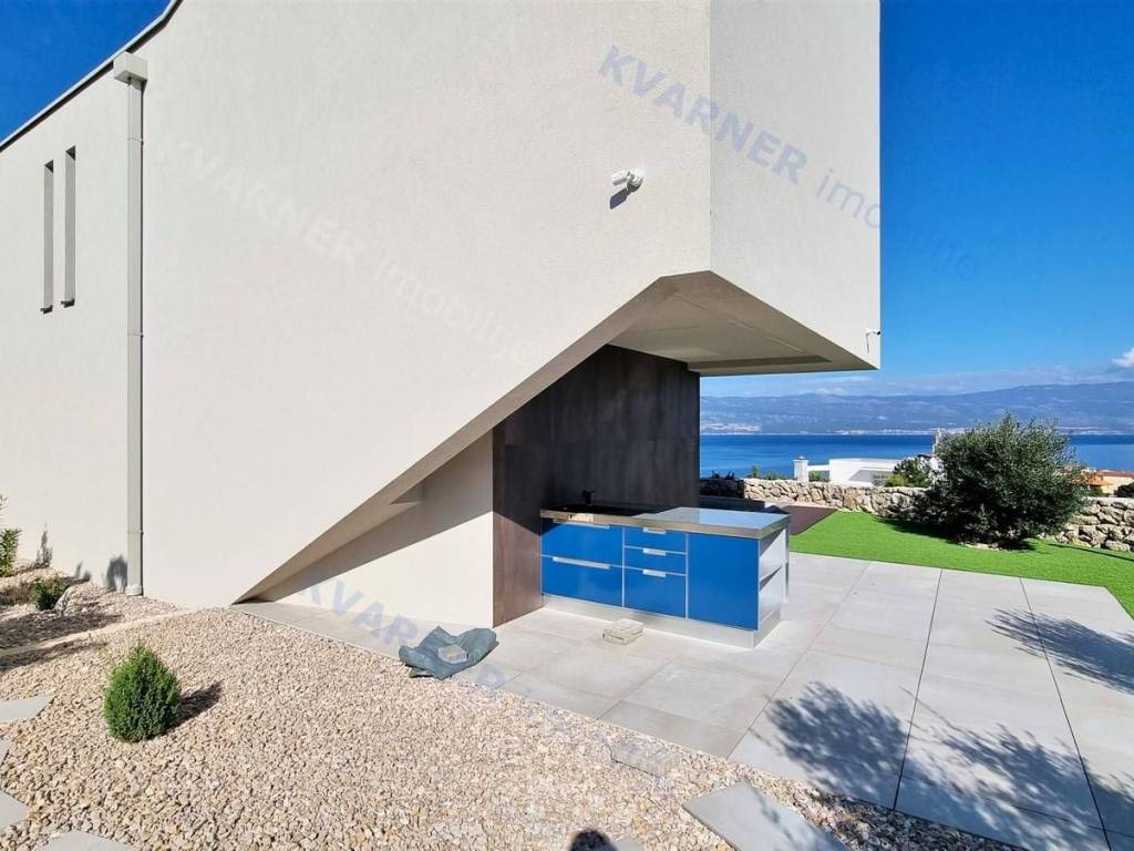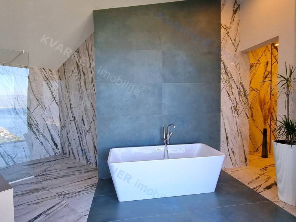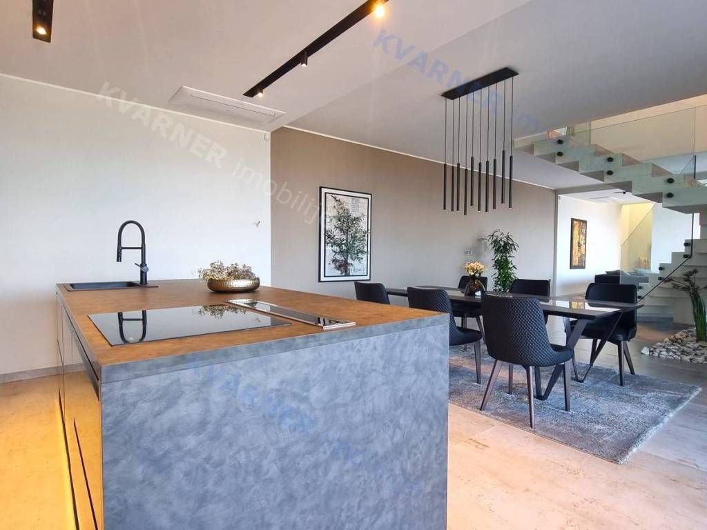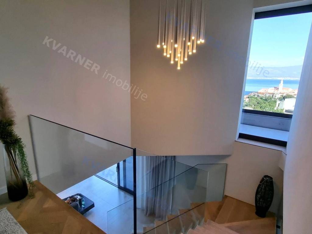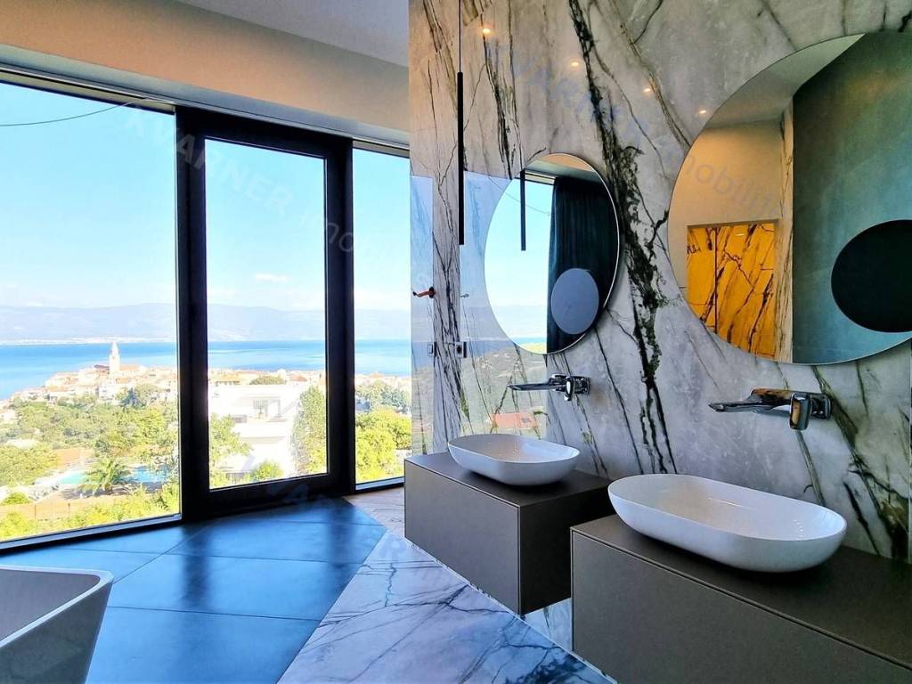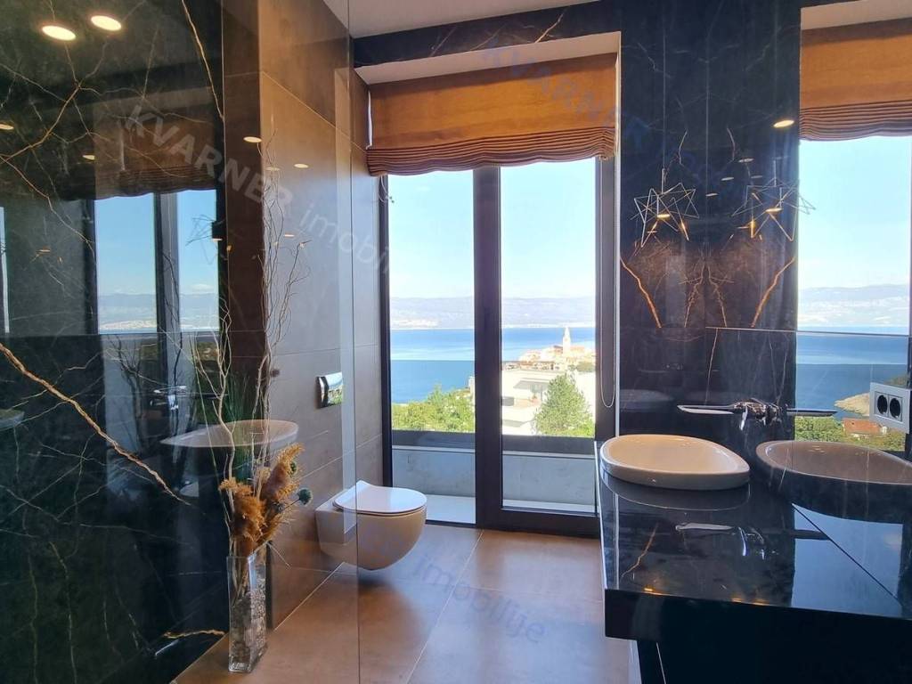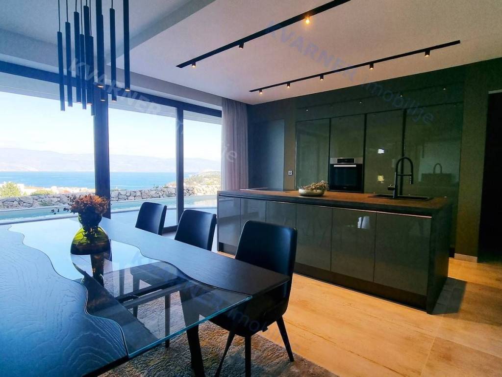 Dobrodošli u svoju vilu iz snova s prekrasnim pogledom na more! Ova moderno dizajnirana luksuzna nekretnina savršeno je mjesto koje možete nazvati domom. Kada zakoračite u prostrani dnevni boravak otvorenog plana u prizemlju, dočekat će vas obilje prirodnog svjetla i prekrasan pogled na more. Prostor dnevnog boravka, blagovaonice i kuhinje neprimjetno se ulijeva jedan u drugi, stvarajući savršen prostor za zabavu gostiju ili opuštanje s obitelji. U prizemlju se nalazi i moderan toalet, savršen za posjetitelje.
