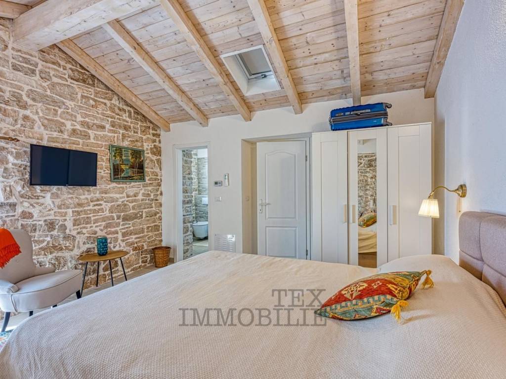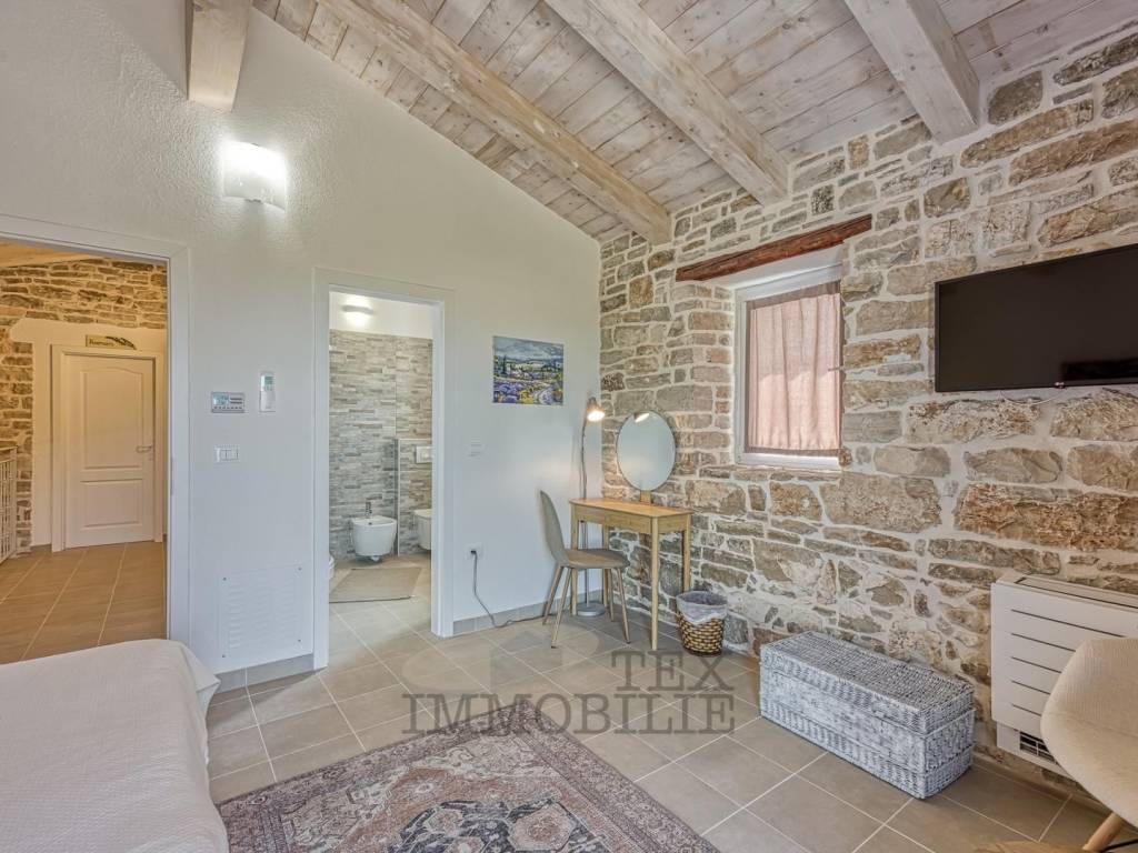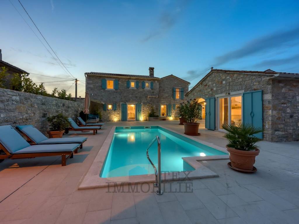 Autohtona kamena vila s bazenom nalazi se u pitoresknom istarskom selu, udaljenom 16 km od mora i grada Poreča.