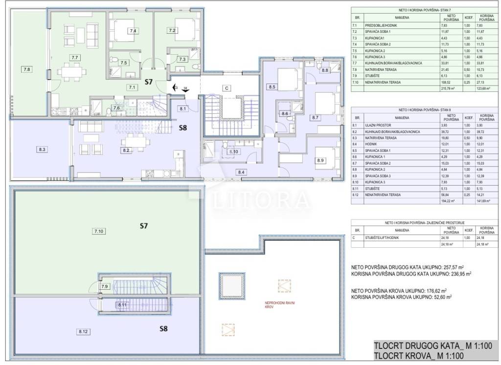 Srima komforan 3-soban apartman sa krovnom terasom i panoramskim pogledom na more