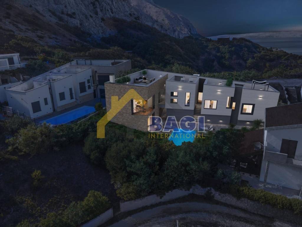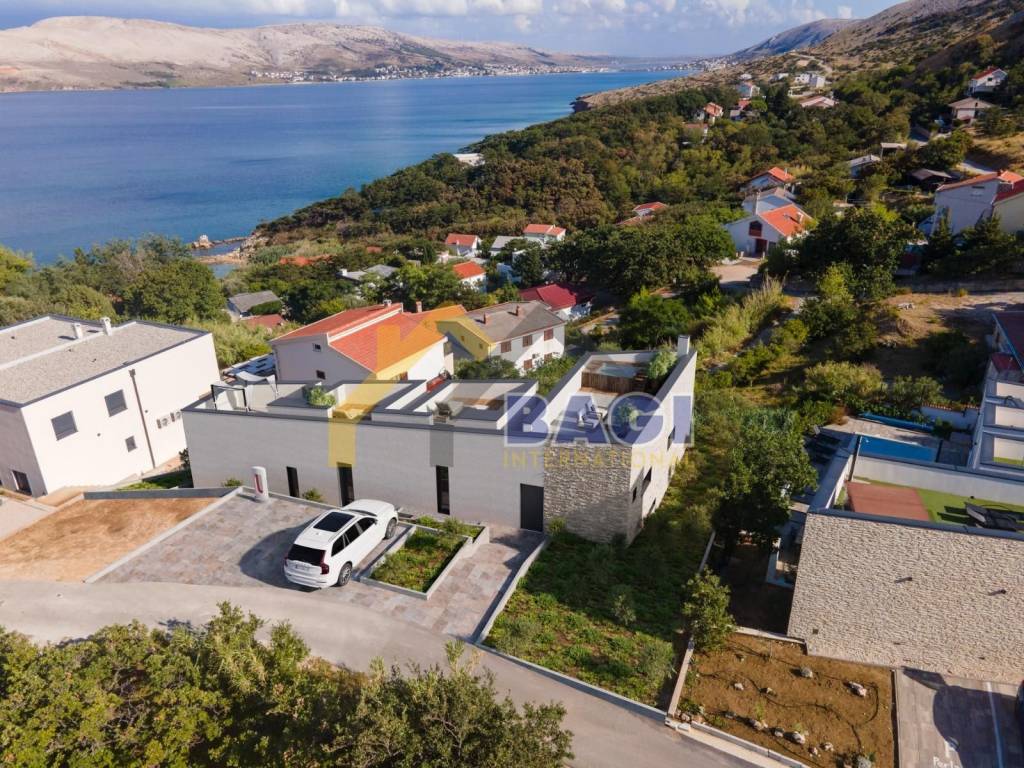 Opis nekretnine ● 3 luksuzne spavaće sobe - svaka sa svojim WC i kupatilom ● dnevni boravak sa balkonom i panoramskim pogledom na more i grad pag ● moderno dizajnirana kuhinja sa velikim šankom te prostorom za pripremu hrane ● U prizemlju se možete zabaviti u dodatno izoliranoj lounge room prostoriji koja ima biljarski stol i stolni nogomet ● Nakon zabave u prizemlju možete koristiti luksuzno opremljenu teretanu sa pripadajućom infracrvenom saunom za 6 osoba ● Terasu krasi cjelogodišnje grijani luksuzni bazen sa privatnim sunčalištem ● Privatna krovna terasa sa panoramskim pogledom na kojoj se nalaze dodatna sunčališta i cijele godine grijani jacuzzi ● privatan parking za 3 automobila opremljen punionicama za električna auta