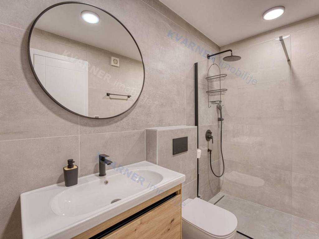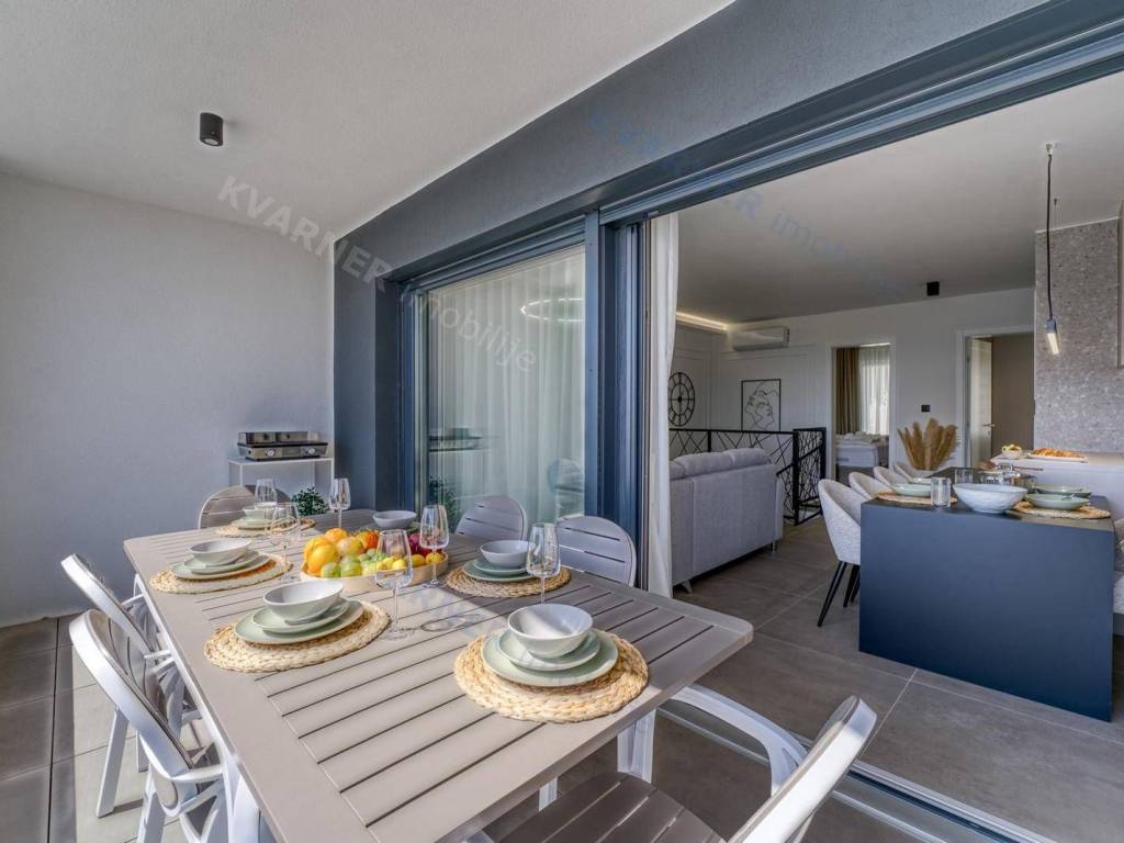 Stan je opremljen dizajnerskim namještajem i vrhunskim aparatima, detaljima koji doprinose ugođaju modernog života te se kao takav i prodaje. U stanu je provedeno električno podno grijanje, a sve prostorije su klimatizirane. Stolarija je kombinacija ALU i PVC s roletama na struju. Nekretnina se nalazi na odličnoj lokaciji u gradu Krku, blizu svih sadržaja i nadomak prekrasnih plaža.